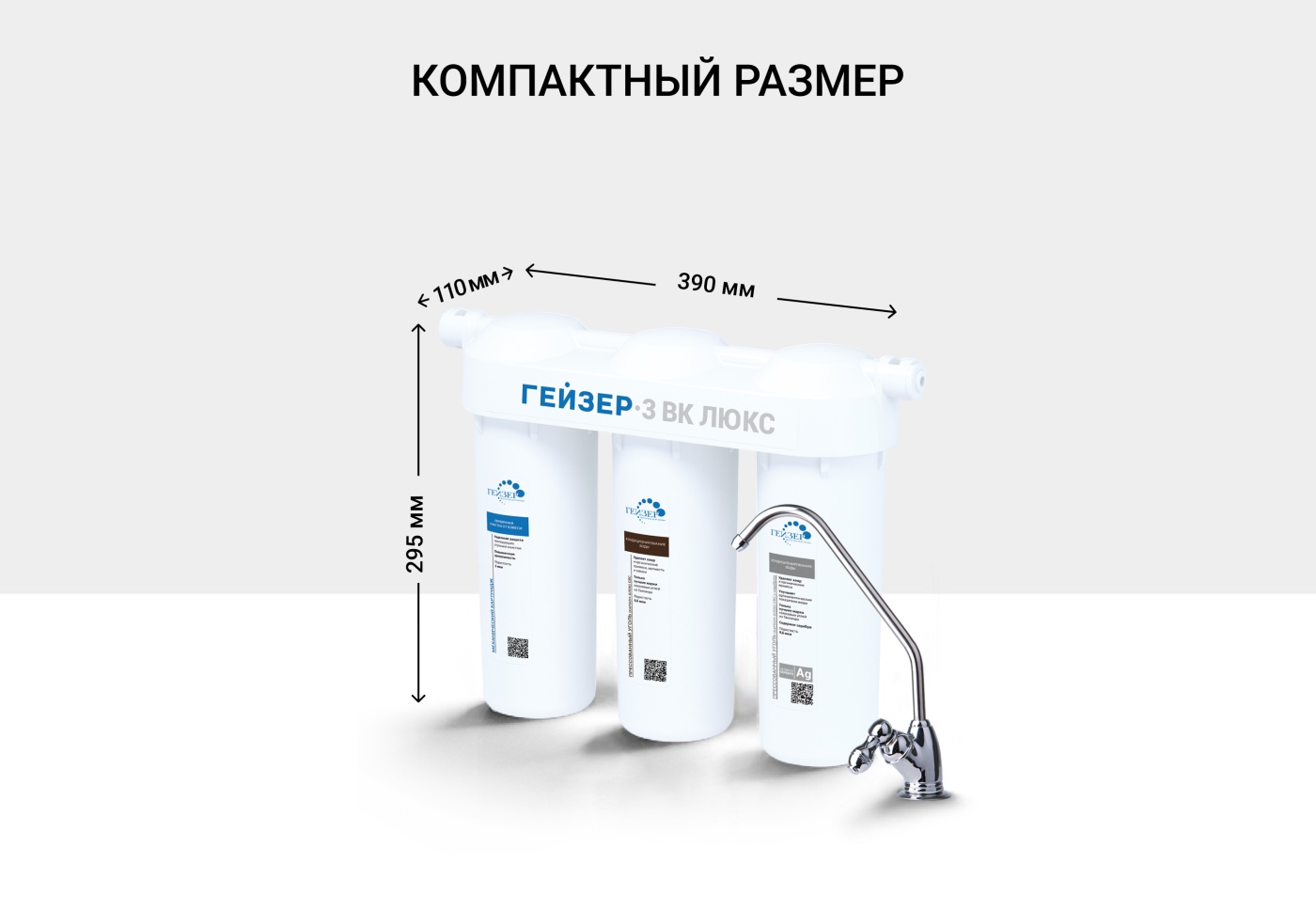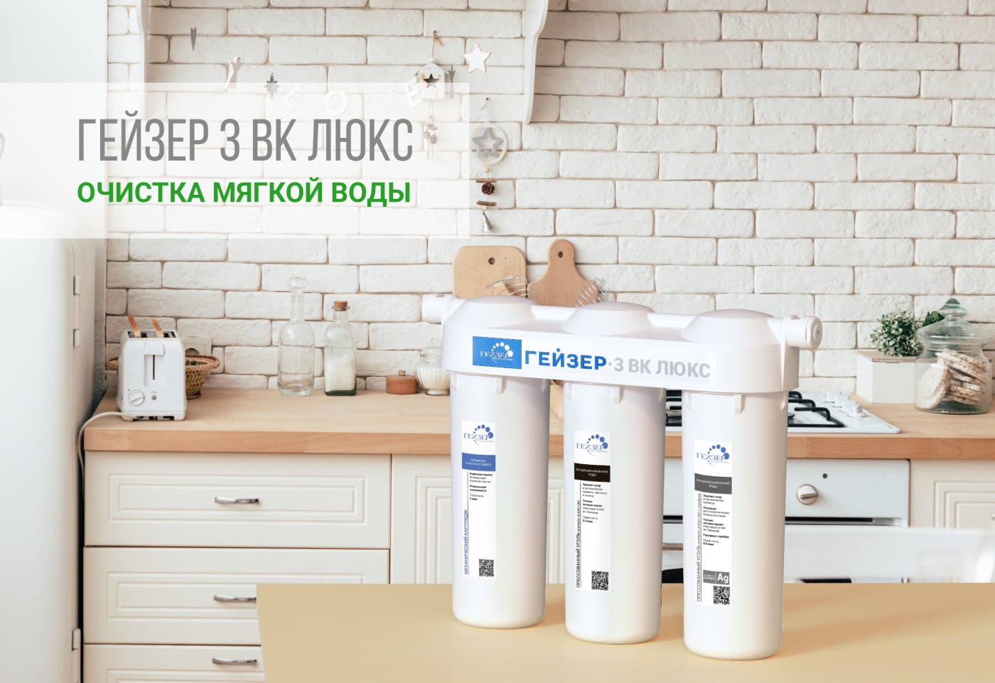 Фильтр Гейзер-3 ВК Люкс разработан для регионов с низким уровнем минерализации (мягкая вода).