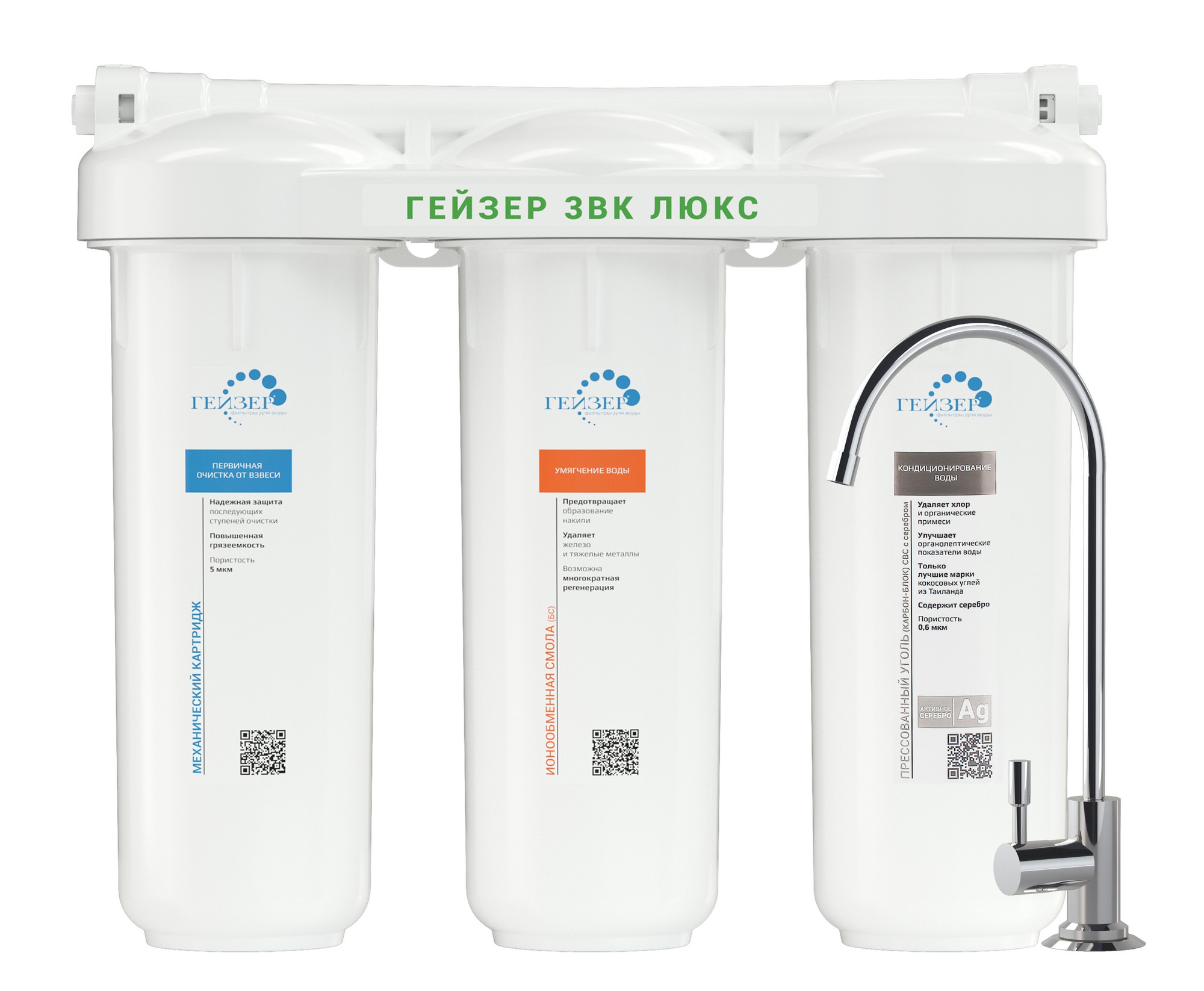 Фильтр Гейзер-3 ВК Люкс для жесткой воды разработан для регионов со средним уровнем минерализации (жесткая вода).