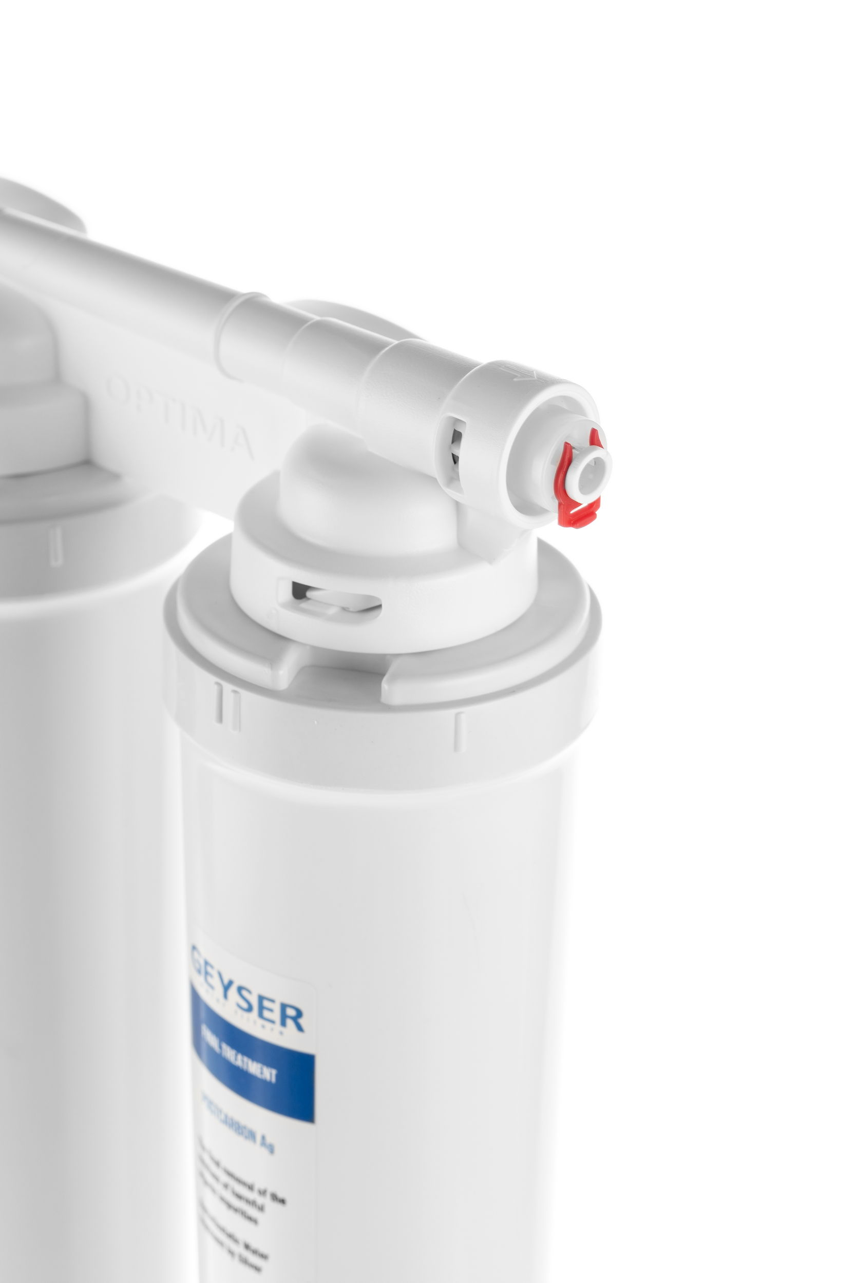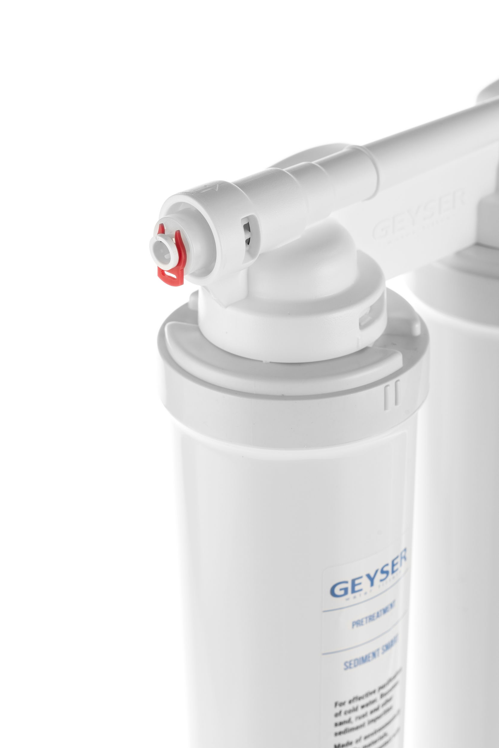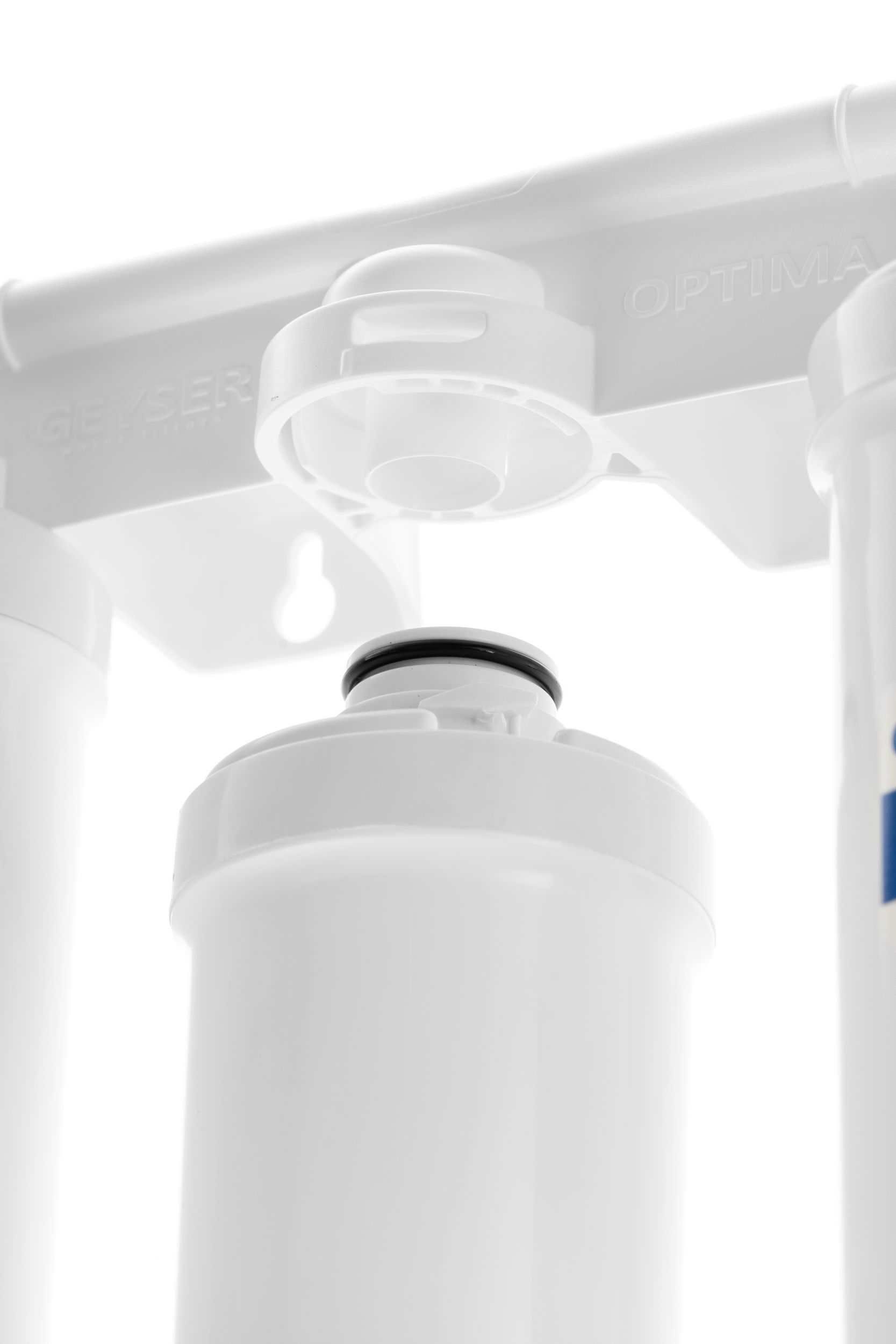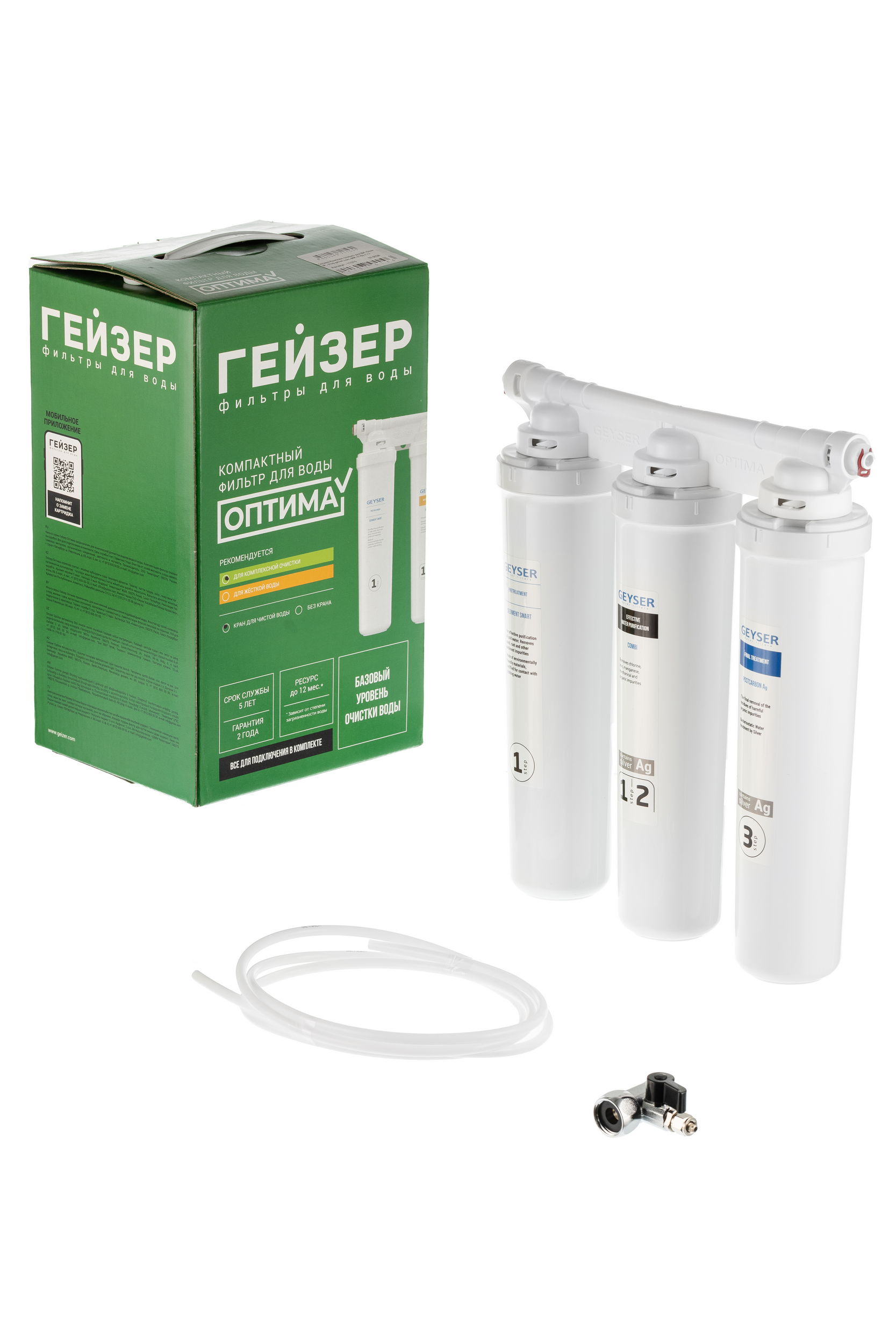 Важным свойством является самоиндикация — фильтр Гейзер Оптима для комплексной очистки сам подскажет, когда пришло время менять картриджи (уменьшение напора в кране для чистой воды).