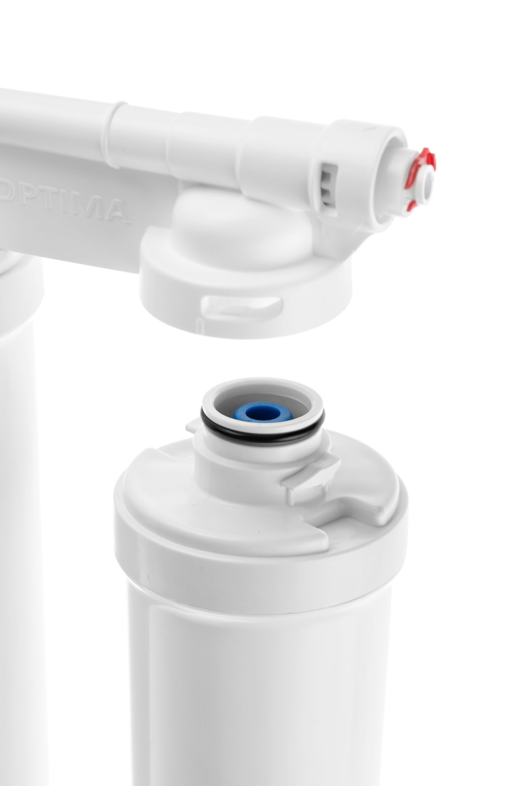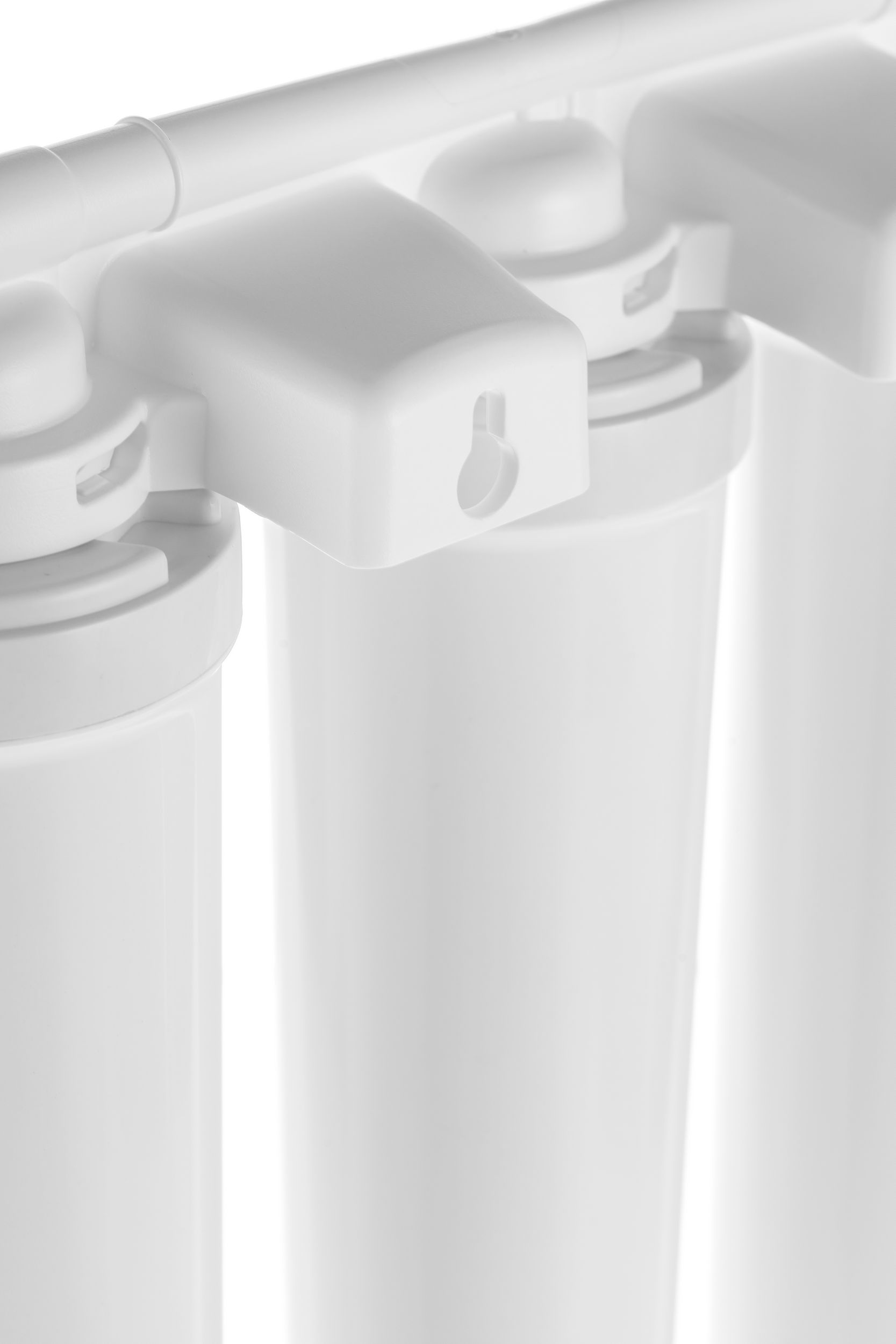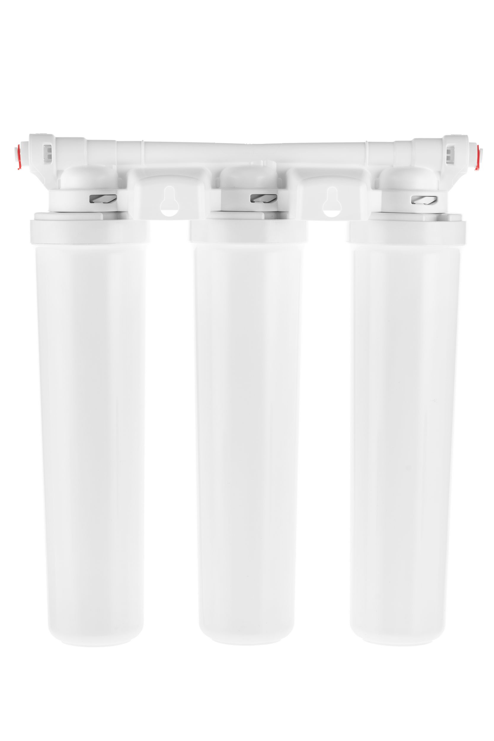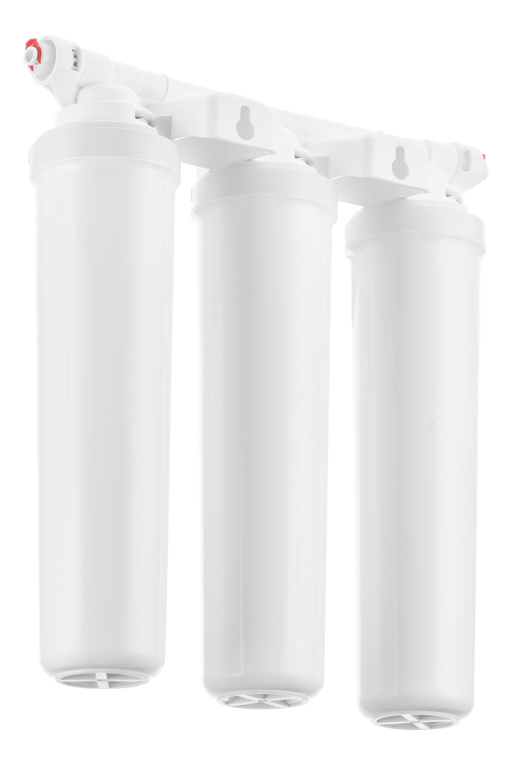 Данная комплектация трехступенчатого фильтра Оптима для комплексной очистки мягкой воды не включает крана чистой воды. Вы можете использовать уже имеющийся кран, подобрать модель под интерьер вашей кухни, подключить к смесителю с выводом фильтрованной воды.