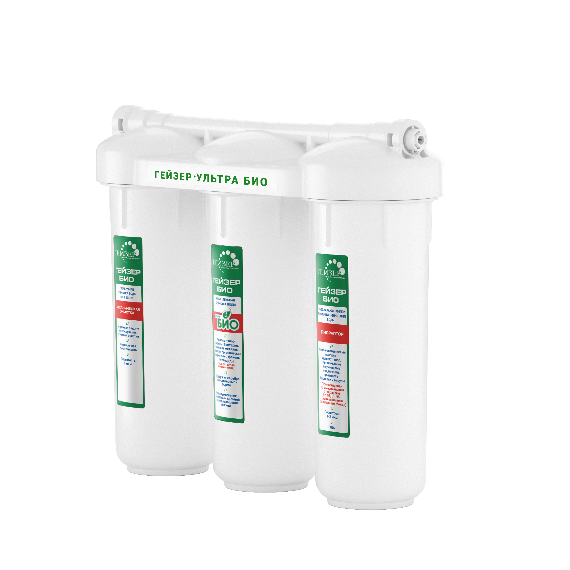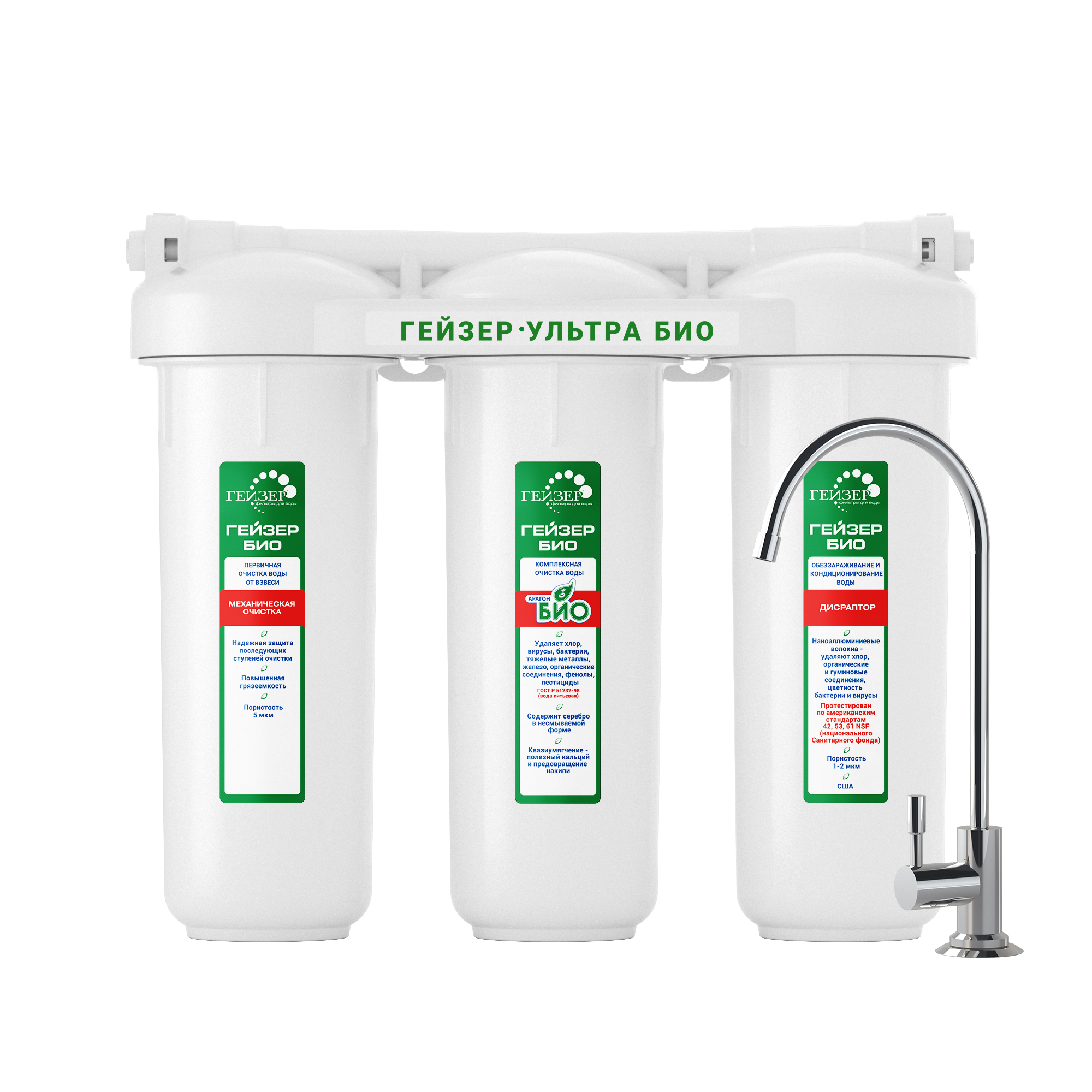 В фильтрах серии Гейзер Ультра БИО применена инновационная технология очистки воды. Сочетание картриджей Арагон–М БИО и Fiber Pro обеспечивают максимально возможное качество фильтрации, увеличенный ресурс, двойной ресурс по удалению бактерий и вирусов, а также прекрасный вкус чистой воды. Отсутствуют вредные выбросы для людей и окружающей среды. Корпус фильтра выполнен из пищевого пластика и выдерживает давление, превышающее рабочее в пять раз.
