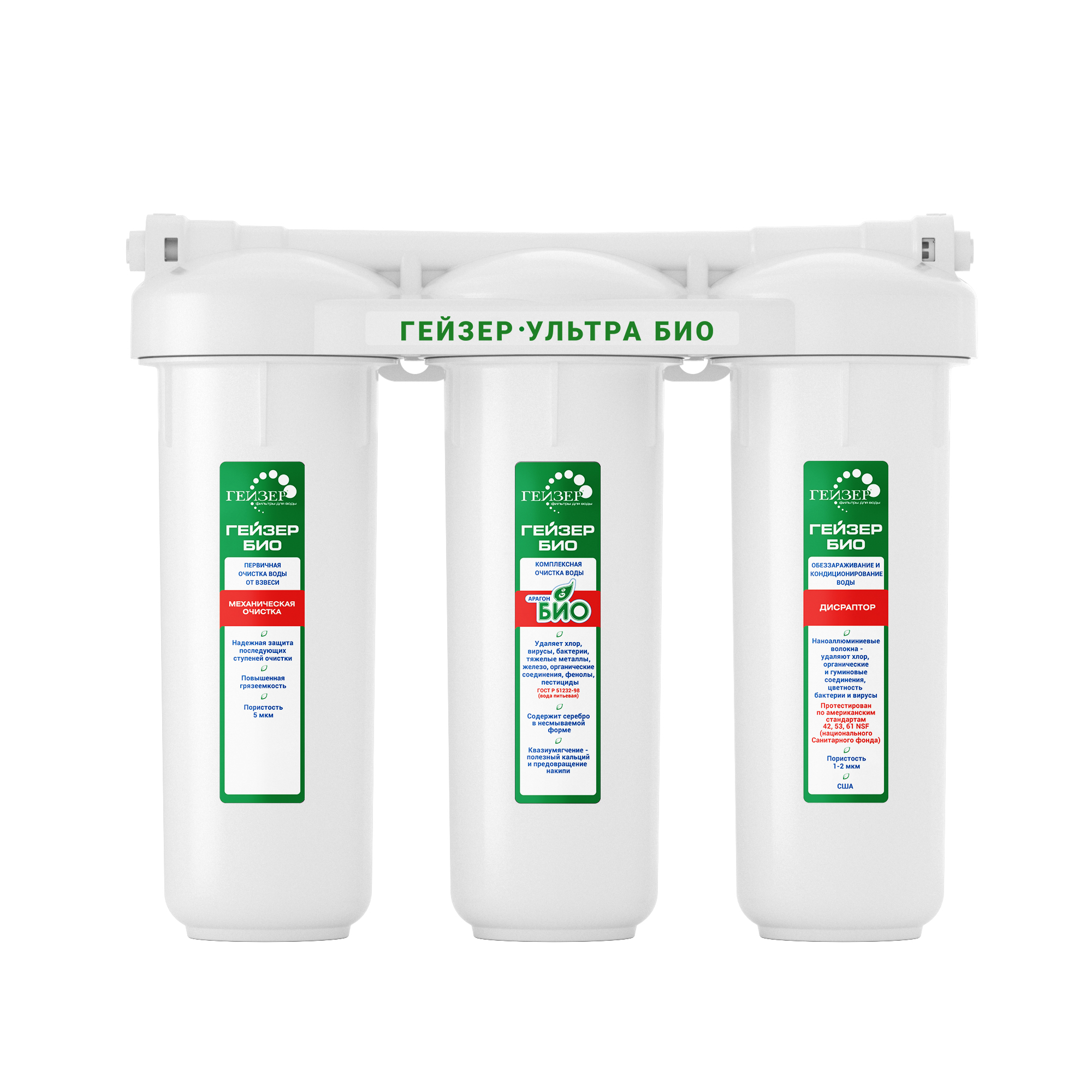 В фильтрах серии Гейзер Ультра БИО применена инновационная технология очистки воды. Сочетание картриджей Арагон 2 БИО и Fiber Pro обеспечивают максимально возможное качество фильтрации, увеличенный ресурс, двойной ресурс по удалению бактерий и вирусов, а также прекрасный вкус чистой воды. Отсутствуют вредные выбросы для людей и окружающей среды. Корпус фильтра выполнен из пищевого пластика и выдерживает давление, превышающее рабочее в пять раз.