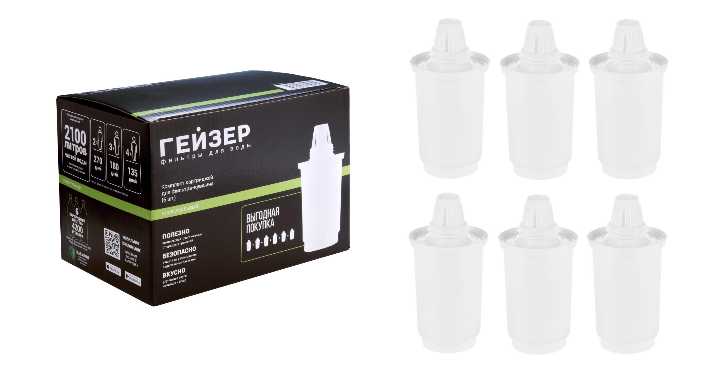 Комплект картриджей ГЕЙЗЕР «Универсальный 6 штук» станет выгодной покупкой и обеспечит запас фильтрующих элементов для непрерывной очистки мягкой воды на длительное время.