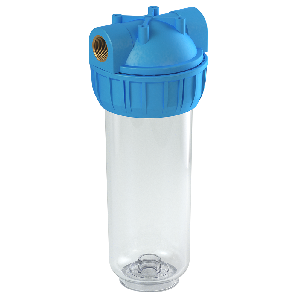 Корпус фильтра Гейзер FH20 10SL 3/4" изготовлен из прозрачного пластика, крышка корпуса выполнена из полипропилена с латунными резьбовыми вставками. Корпус рассчитан на работу под давлением и установку на входе в систему холодного водоснабжения. Все части корпуса фильтра изготовлены из материалов, допущенных к контакту с питьевой водой.