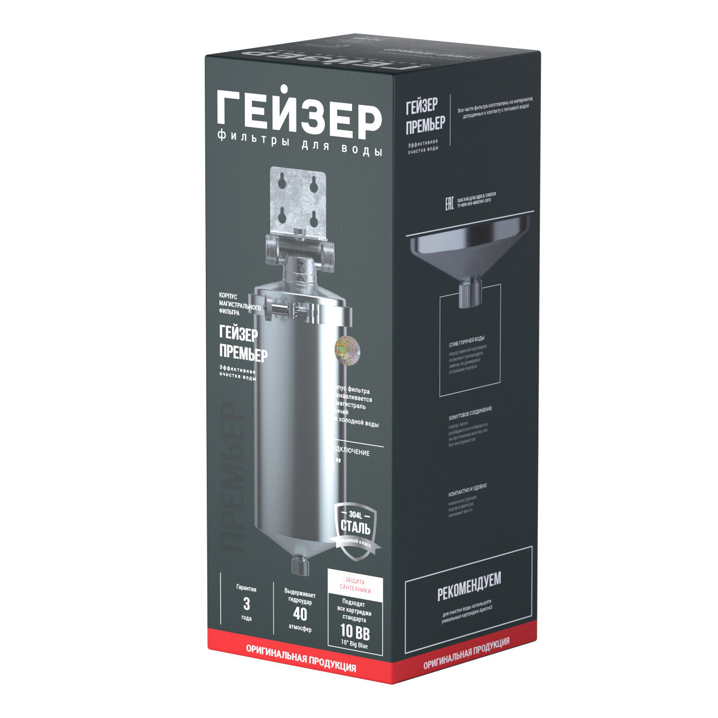 Гейзер Премьер 10BB 1" устанавливается на вход в систему горячего или холодного водоснабжения. Корпус фильтра изготовлен из высококачественной нержавеющей стали марки 304L, устойчивой к возникновению коррозии, что гарантирует высокую надежность и многолетнюю работу фильтра.