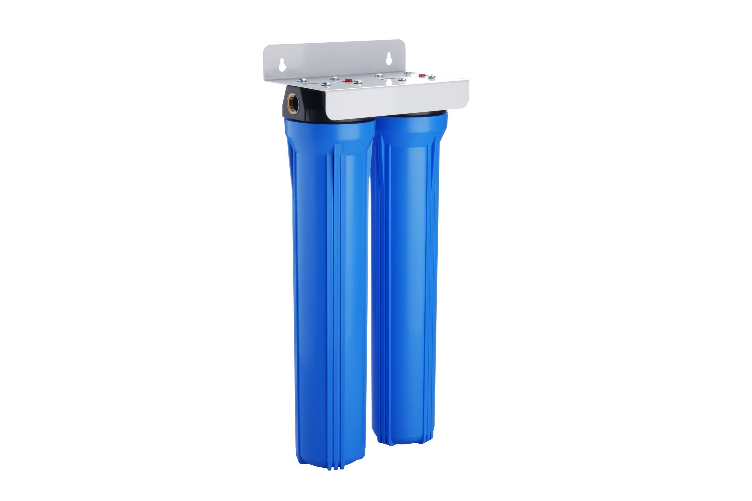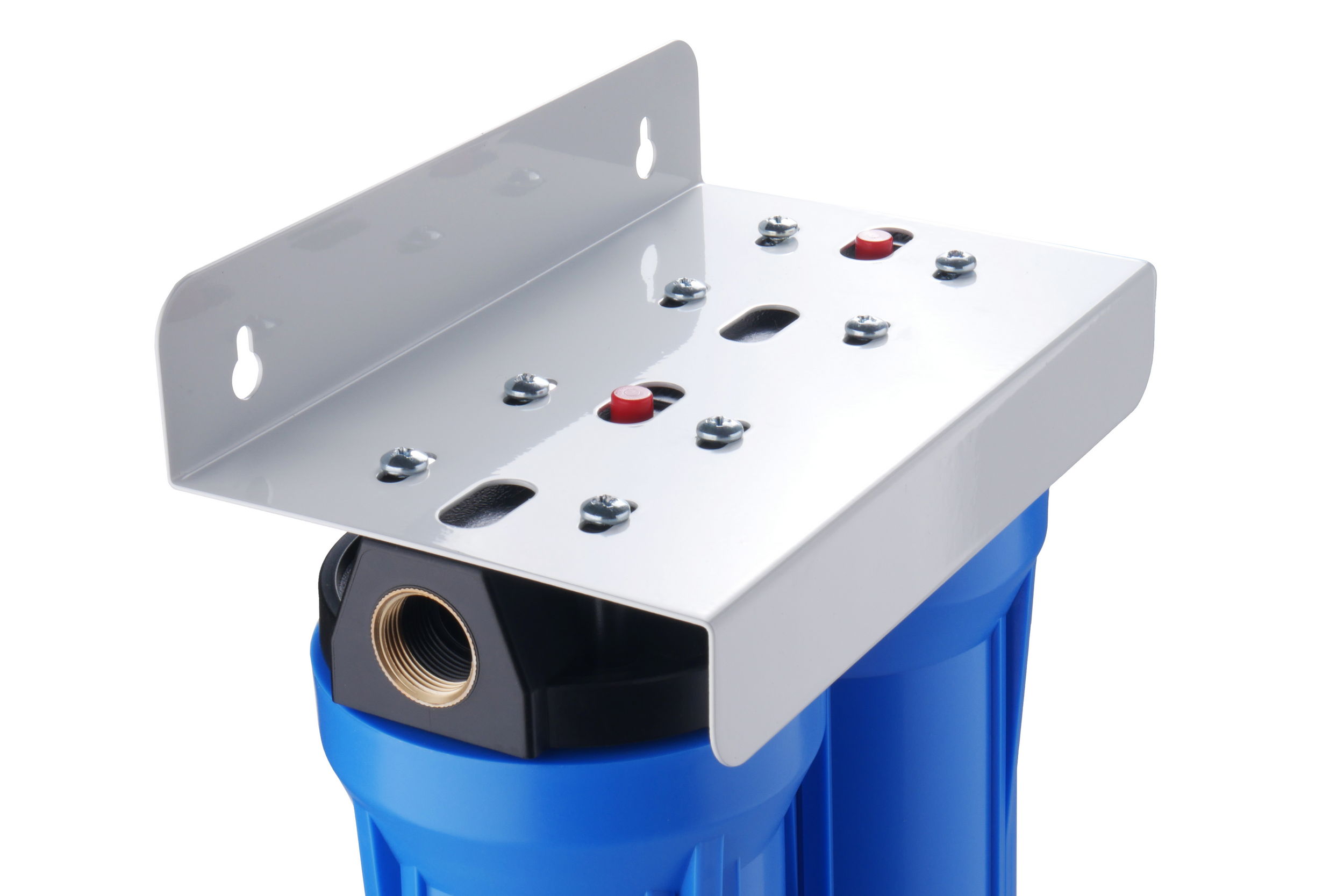 Корпус магистрального фильтра 20SL 3/4″ ВР двойной синий, с латунными вставками. Предназначен для очистки холодной воды. Может устанавливаться на вход в систему водоснабжения квартиры или дома. Объединение нескольких корпусов дает возможность использования картриджей разных фильтрующих свойств и экономит пространство