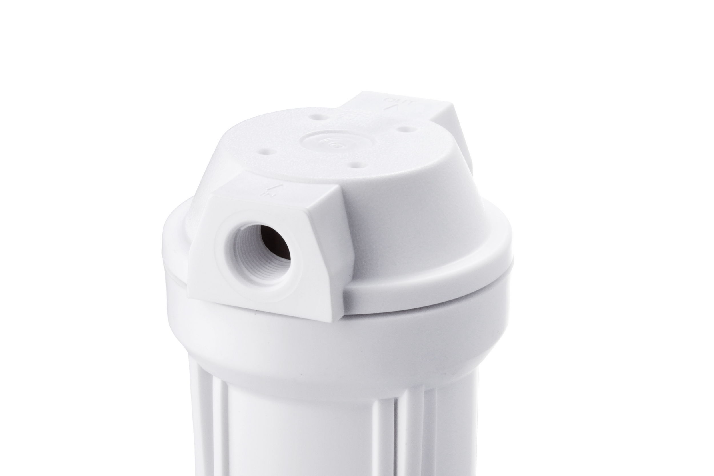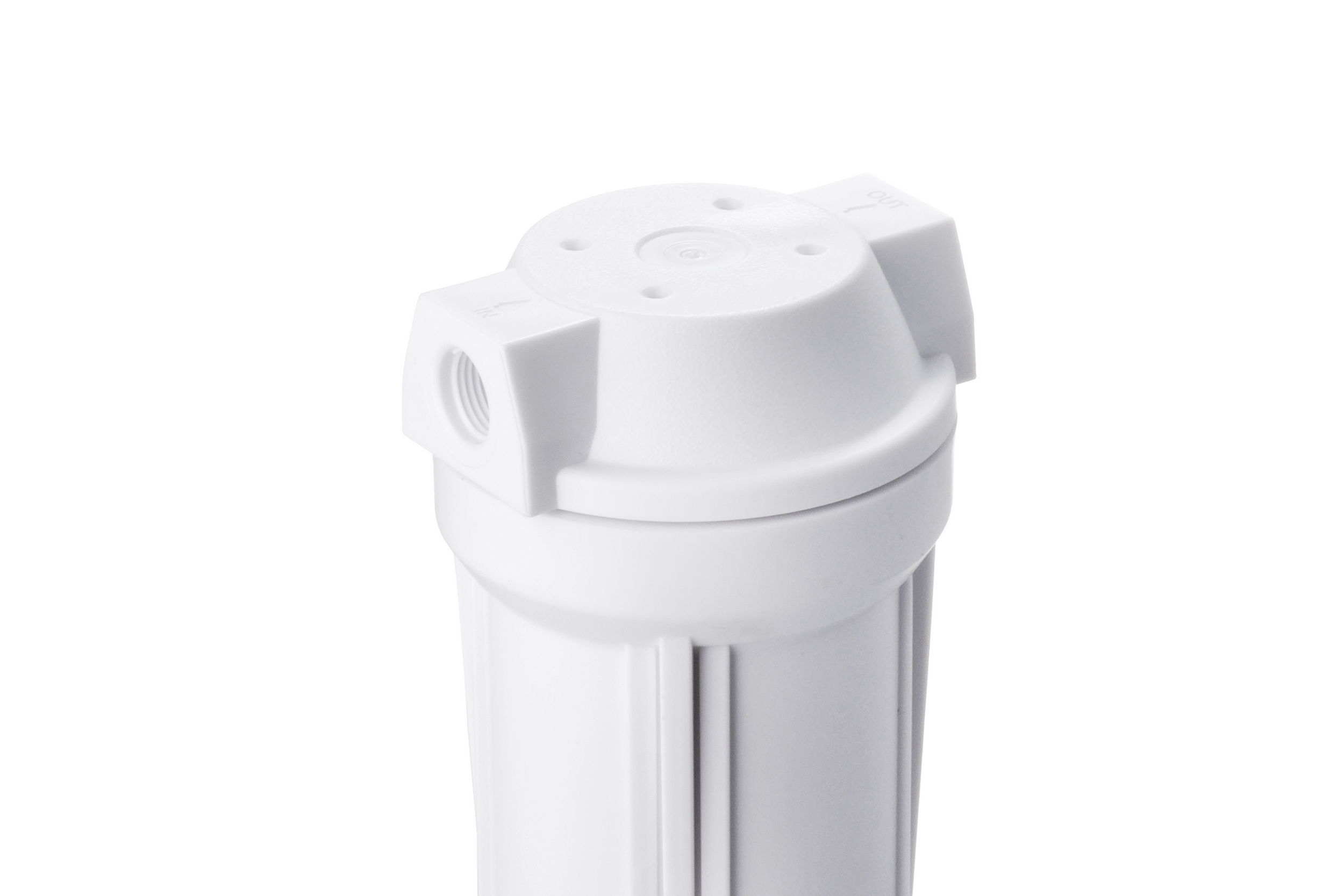 Корпус магистрального фильтра 10SL 1/2″ ВР белый, без латунных вставок. Предназначен для очистки холодной воды. Может устанавливаться на вход в систему водоснабжения квартиры или дома.