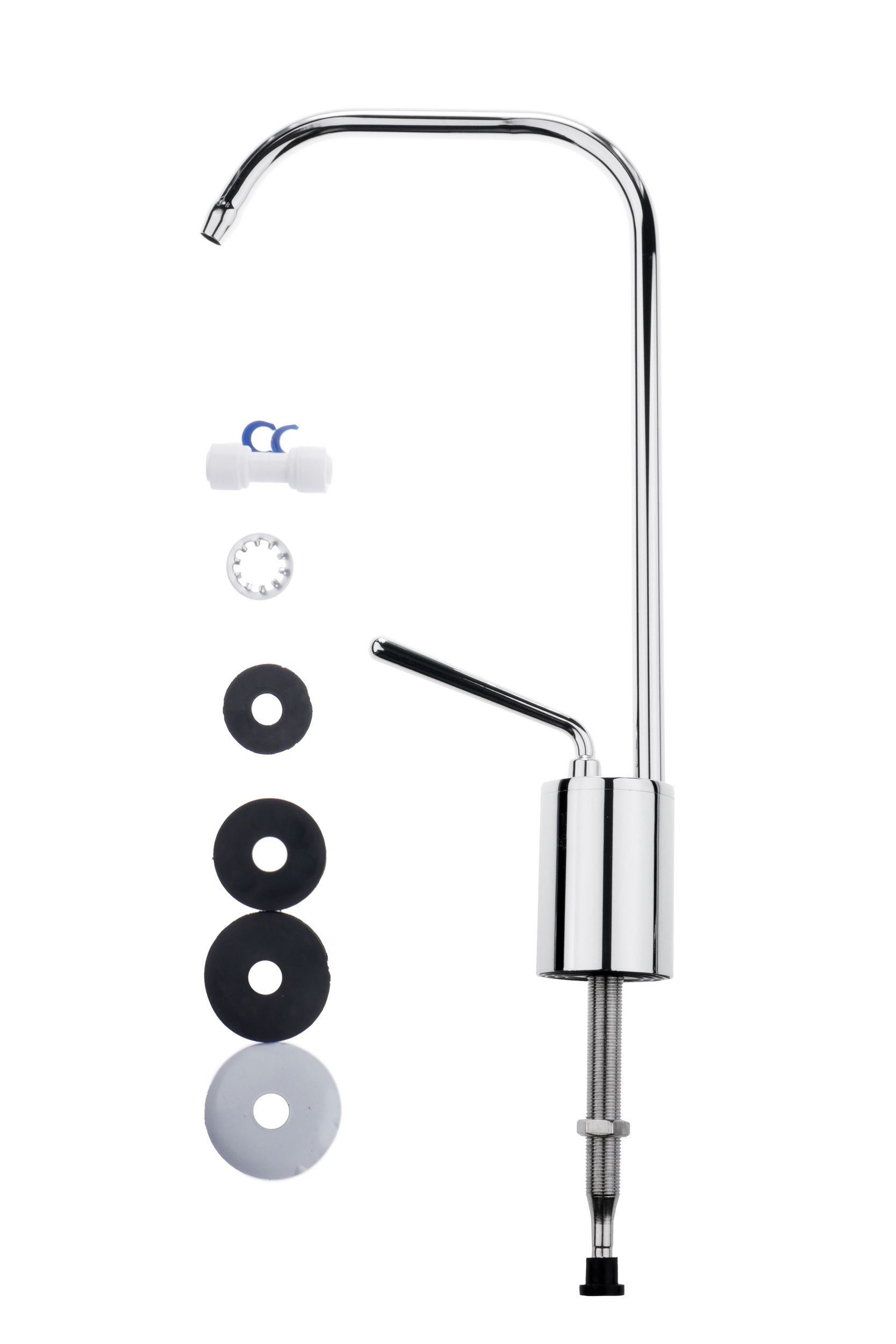 Современный кран для фильтра питьевой воды Элит в хромированном исполнении совместим с фильтрами всех брендов и любой конструкции. Кран с поворотным изливом 360о изготовлен из качественного латунного сплава.