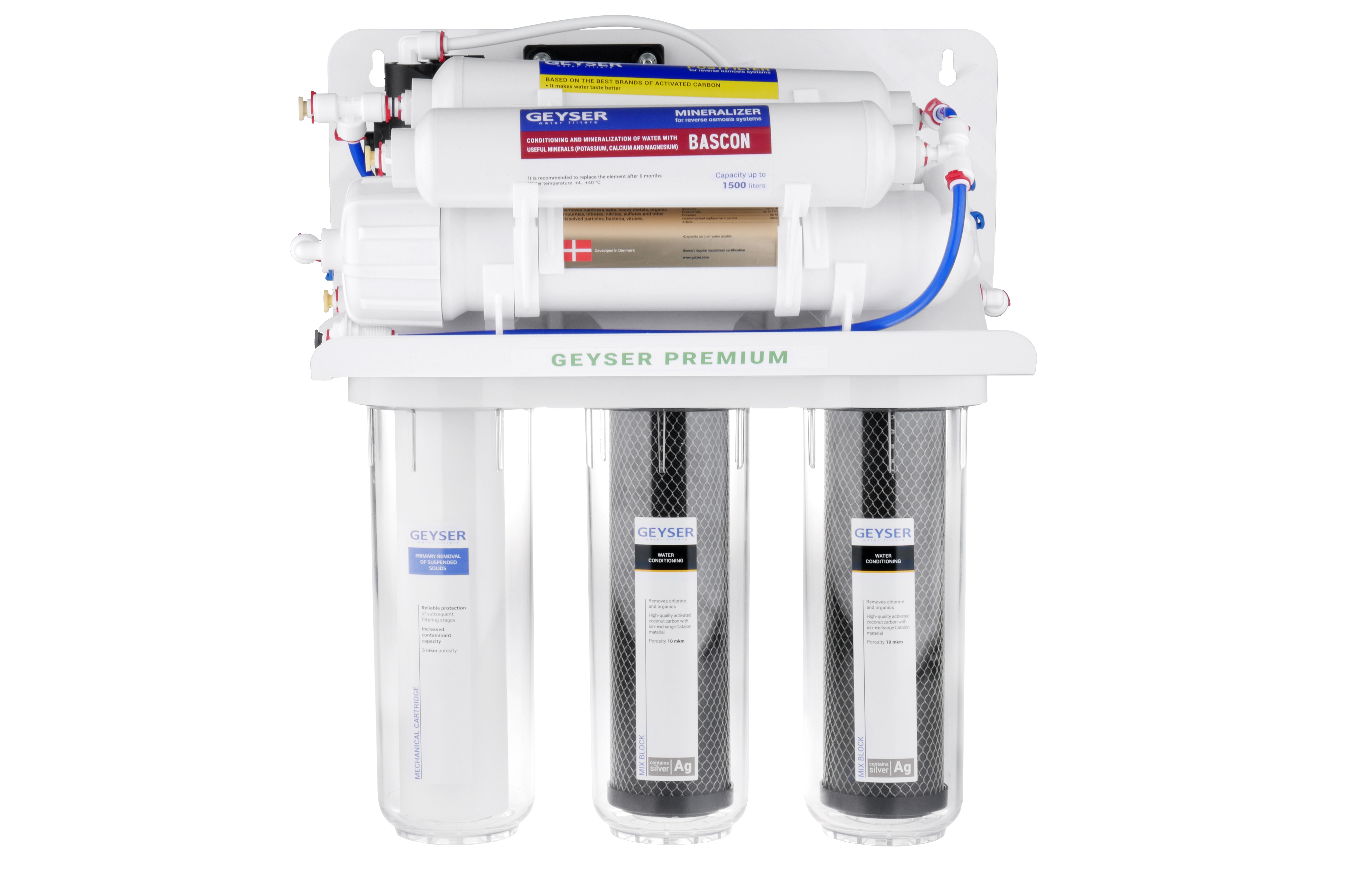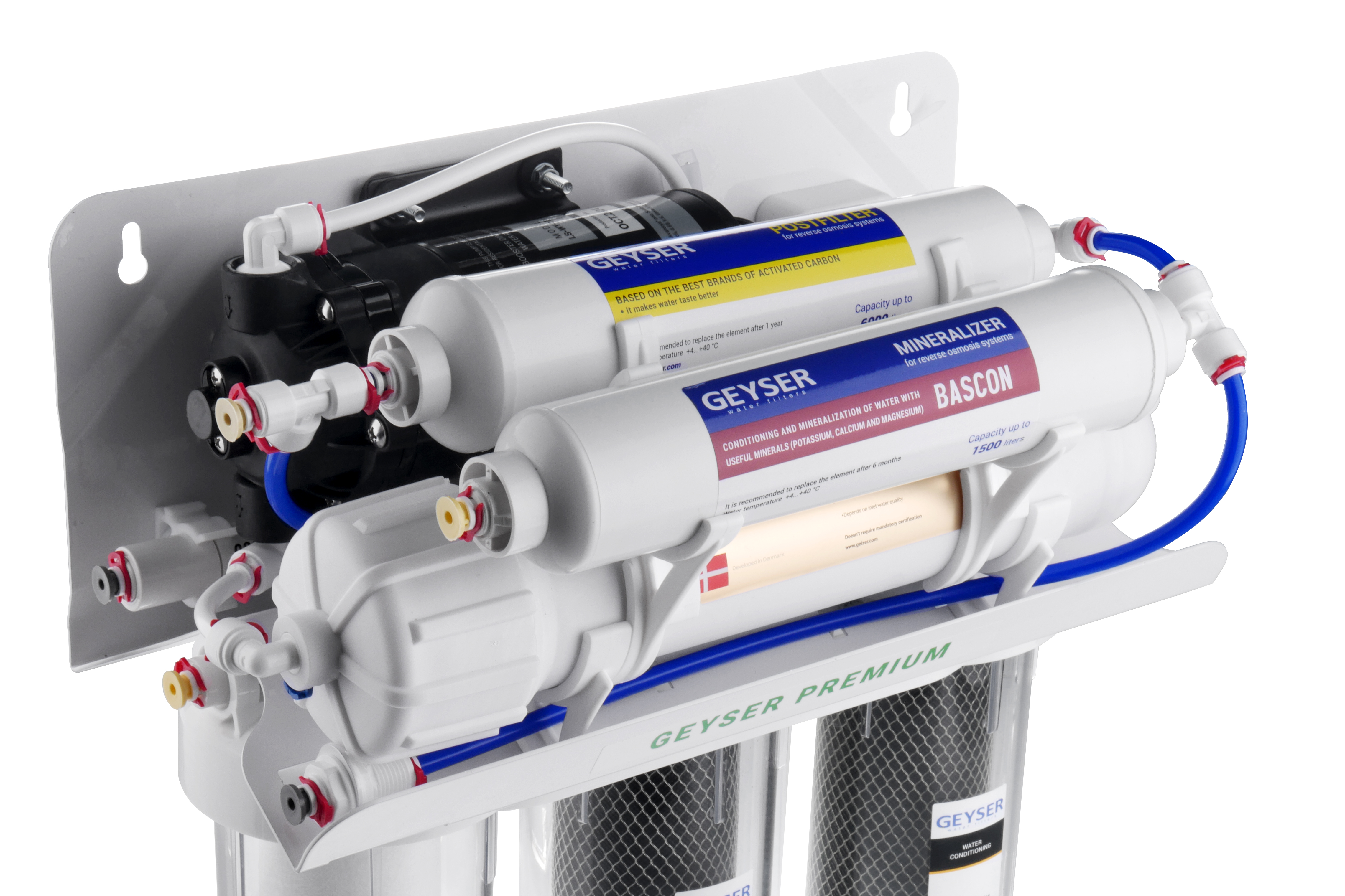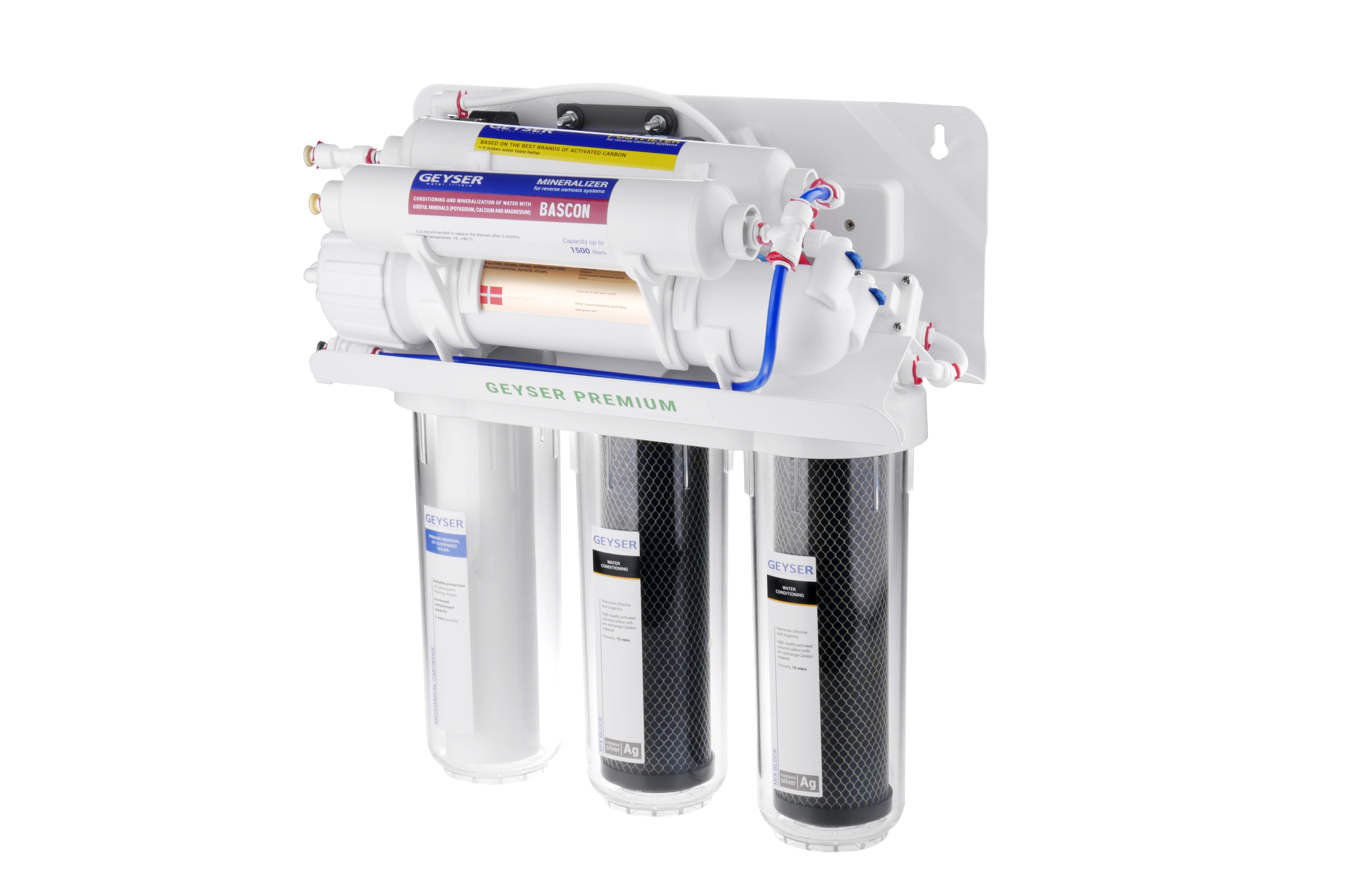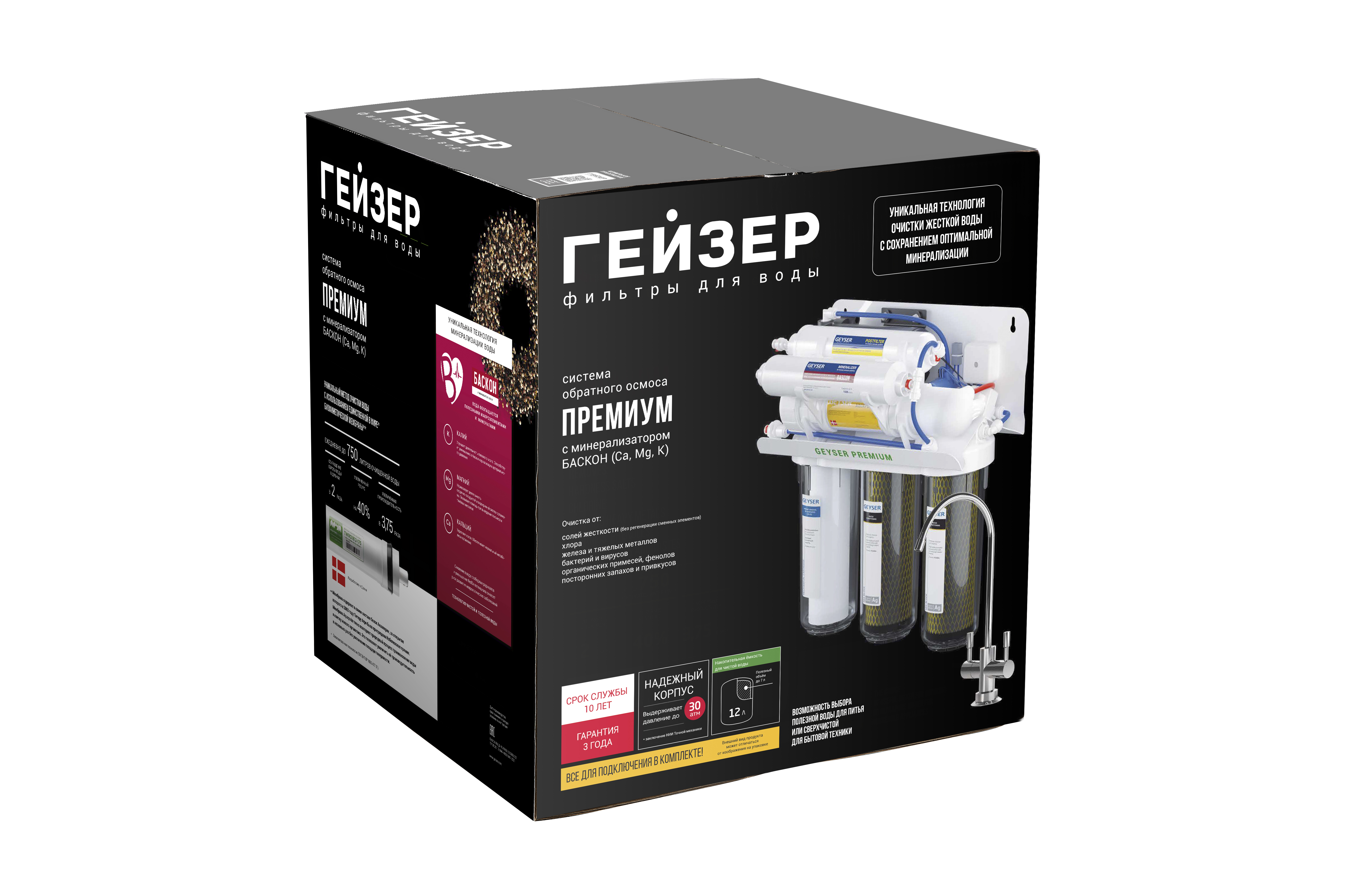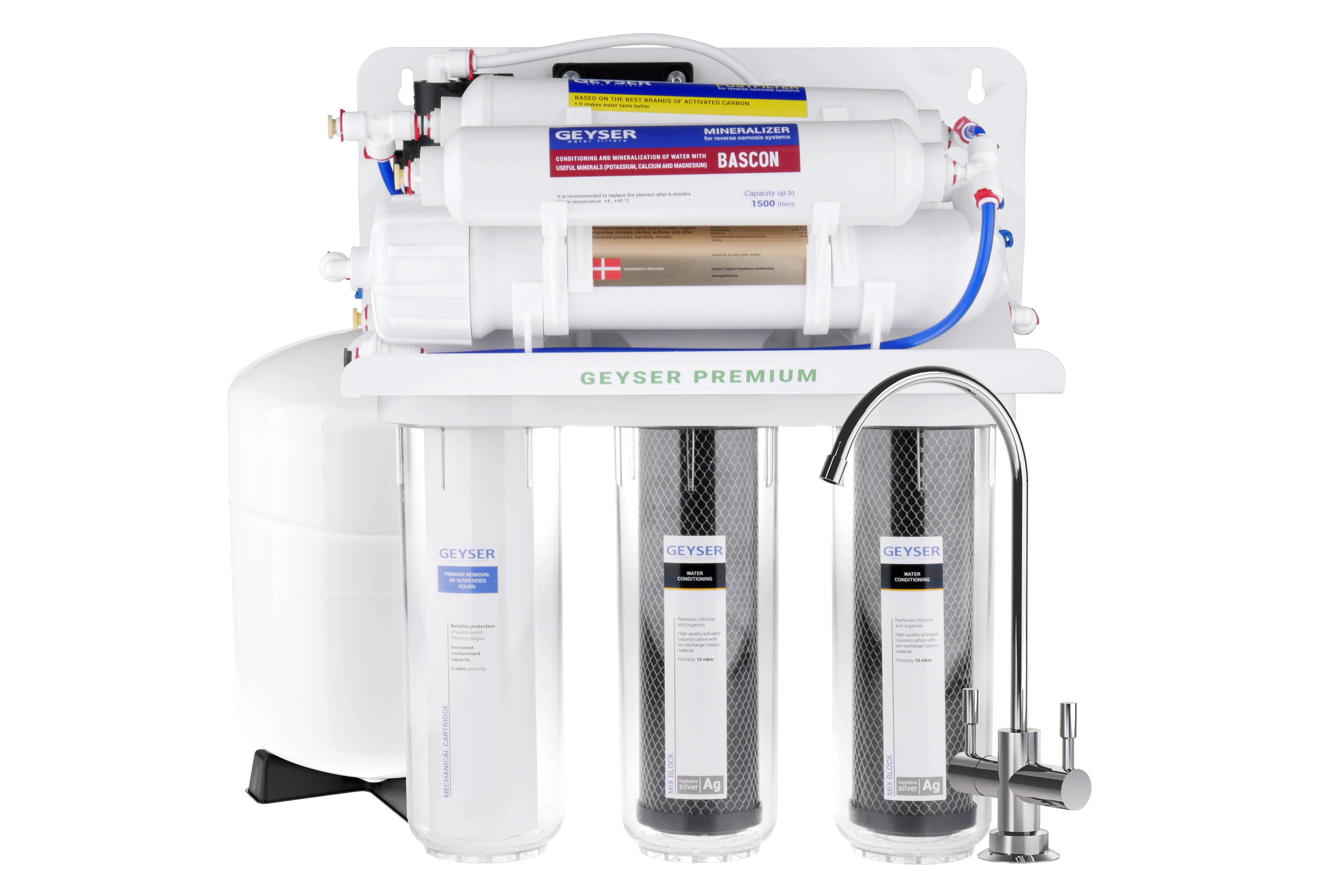 Заказать звонокСистема обратного осмоса Гейзер Премиум используется для доочистки водопроводной воды от вредных примесей, таких как железо, бактерии, хлорорганические и органические примеси, хлор, тяжелые металлы, нитраты, механические частицы, избыток солей жесткости, а также для корректировки ее минерального состава, что делает воду абсолютно чистой и безопасной.