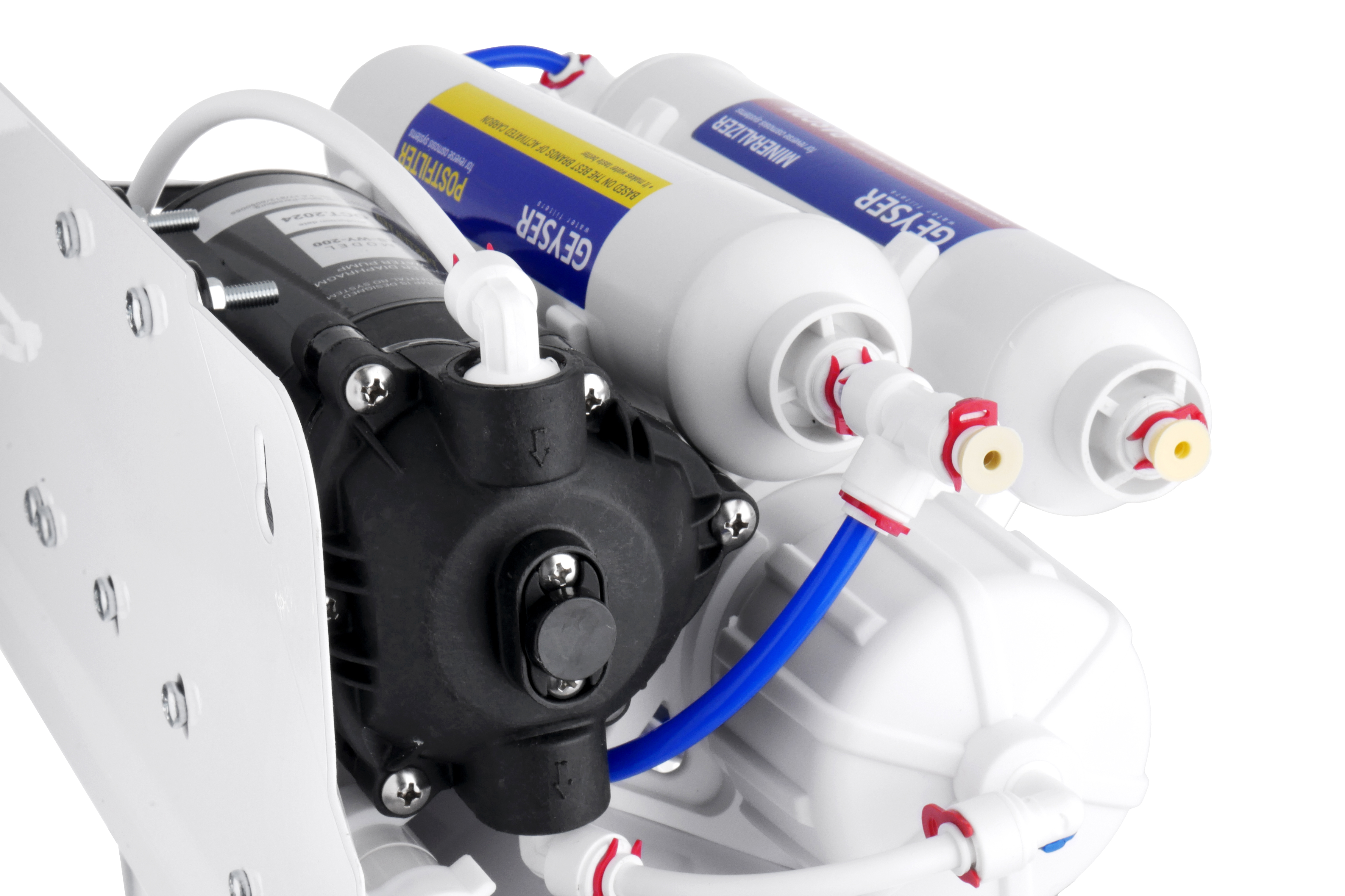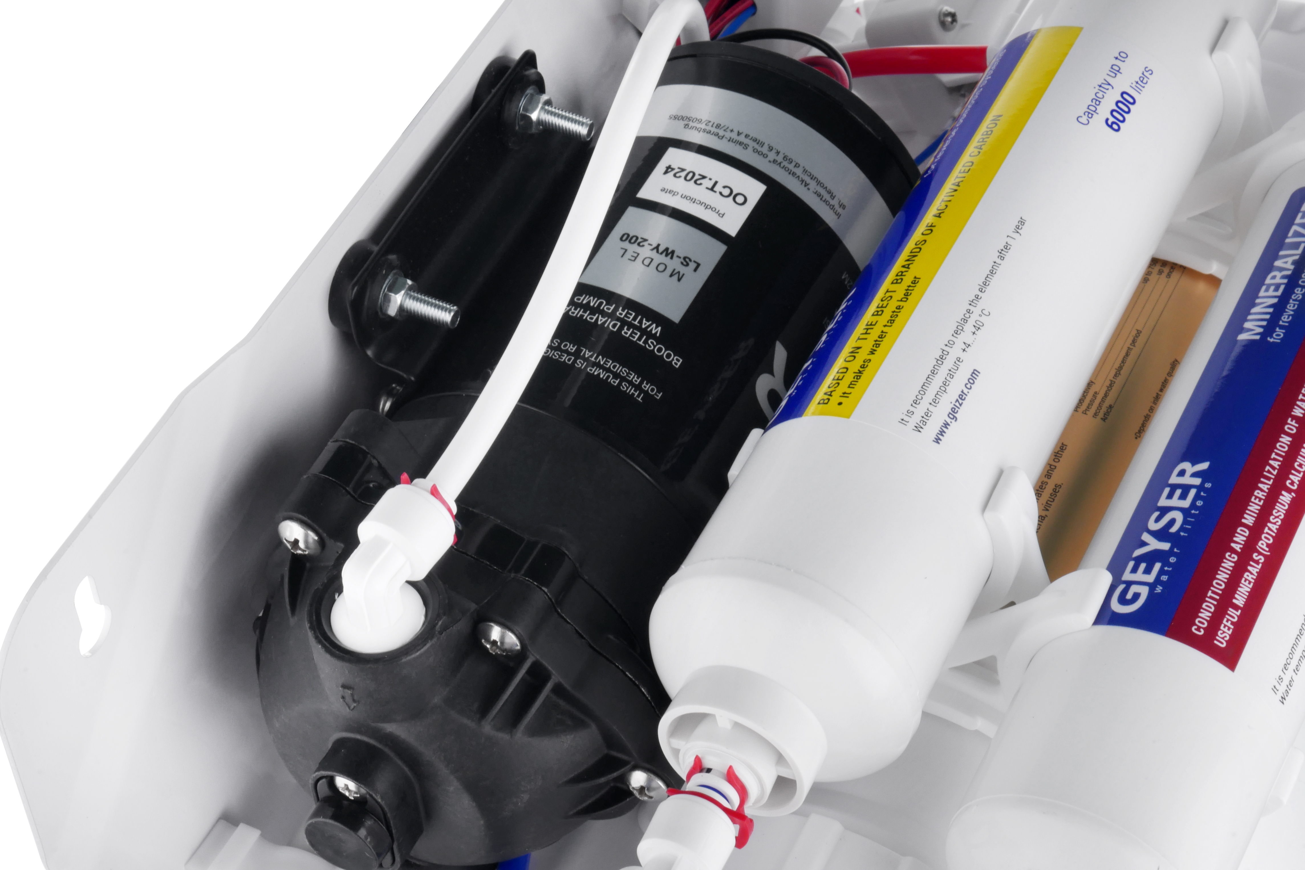 С помпой обратный осмос эффективно работает и при недостаточном давлении в магистрали.