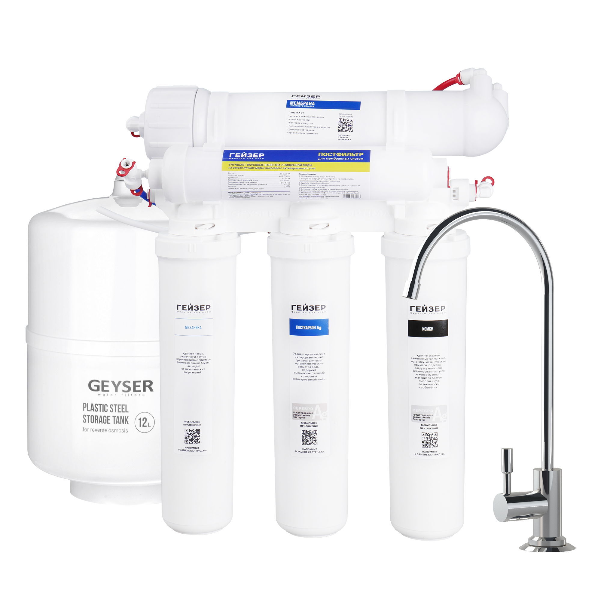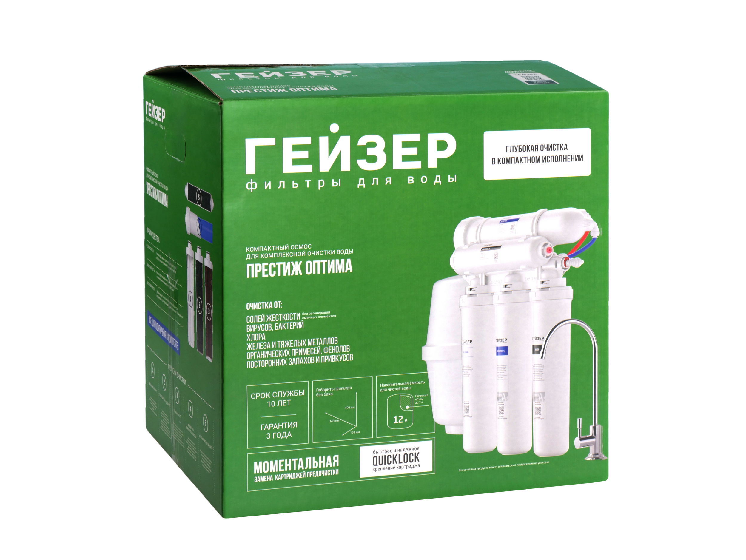 Обратноосмотический фильтр с накопительным баком Гейзер Престиж Оптима – современная компактная система доочистки водопроводной воды. Картриджи предварительной очистки быстросъемные, с креплением QUICKLOCK, что упрощает обслуживание системы: на их замену потребуется всего пара минут.