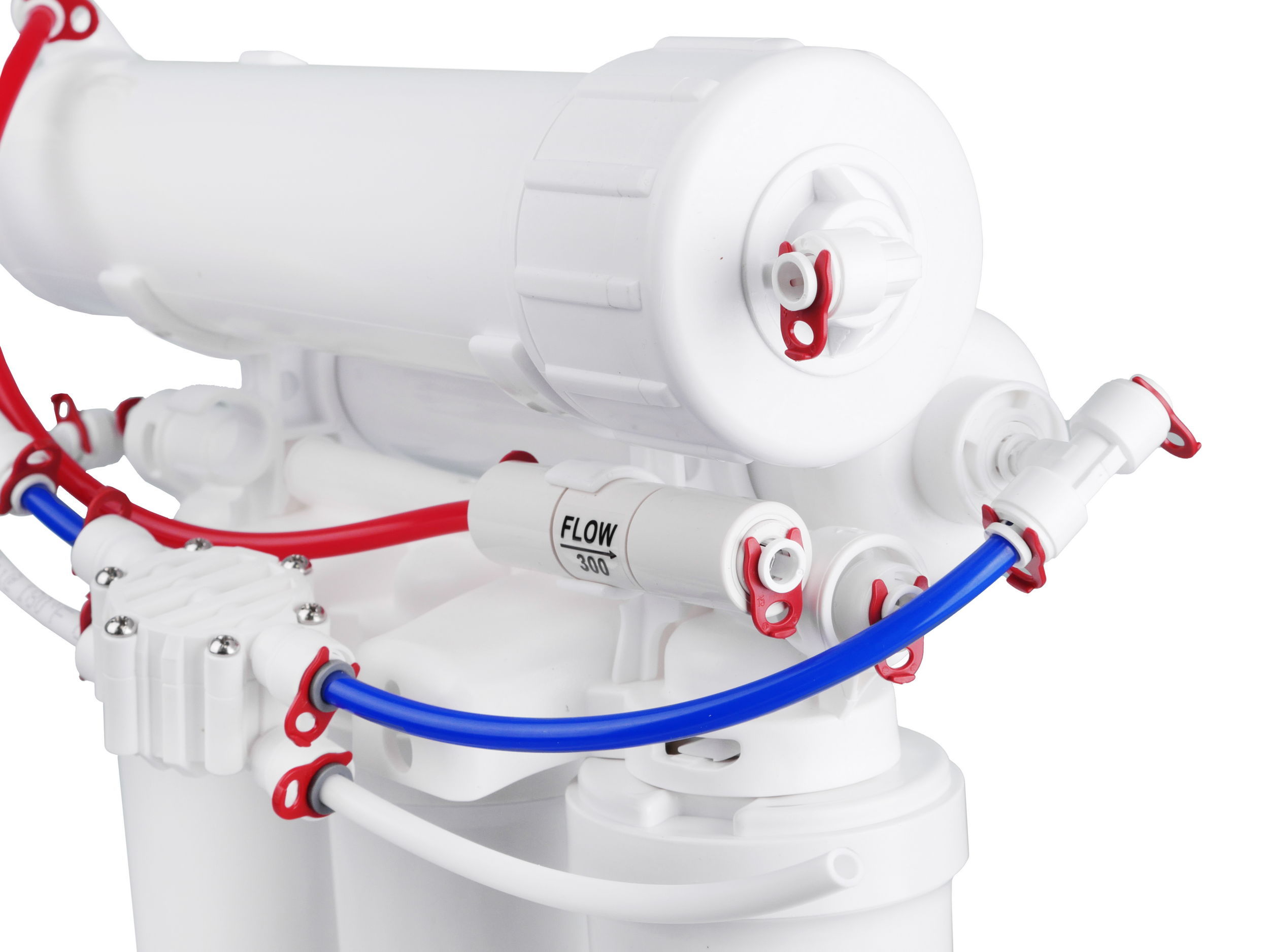 - Мембрана обратного осмоса 100 GPD – выполняет сверхтонкую очистку от солей жесткости, железа, тяжелых металлов (свинец, кадмий, медь, железо, хром и т.д.), бактерий, вирусов, ядохимикатов, нитритов, радиоактивных элементов (кобальт, полоний, цезий, радий), микропластика и др. примесей размером свыше 0,0001 мкм.