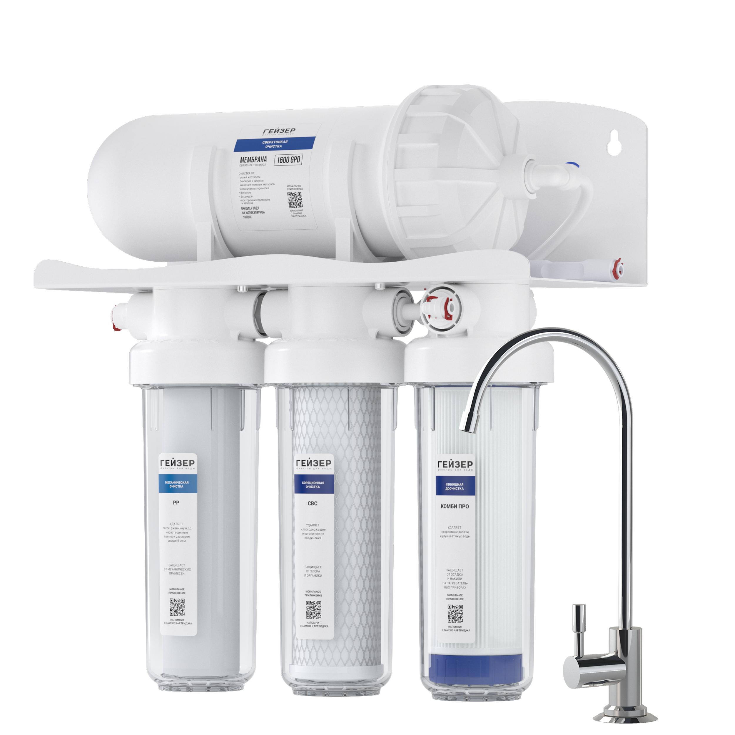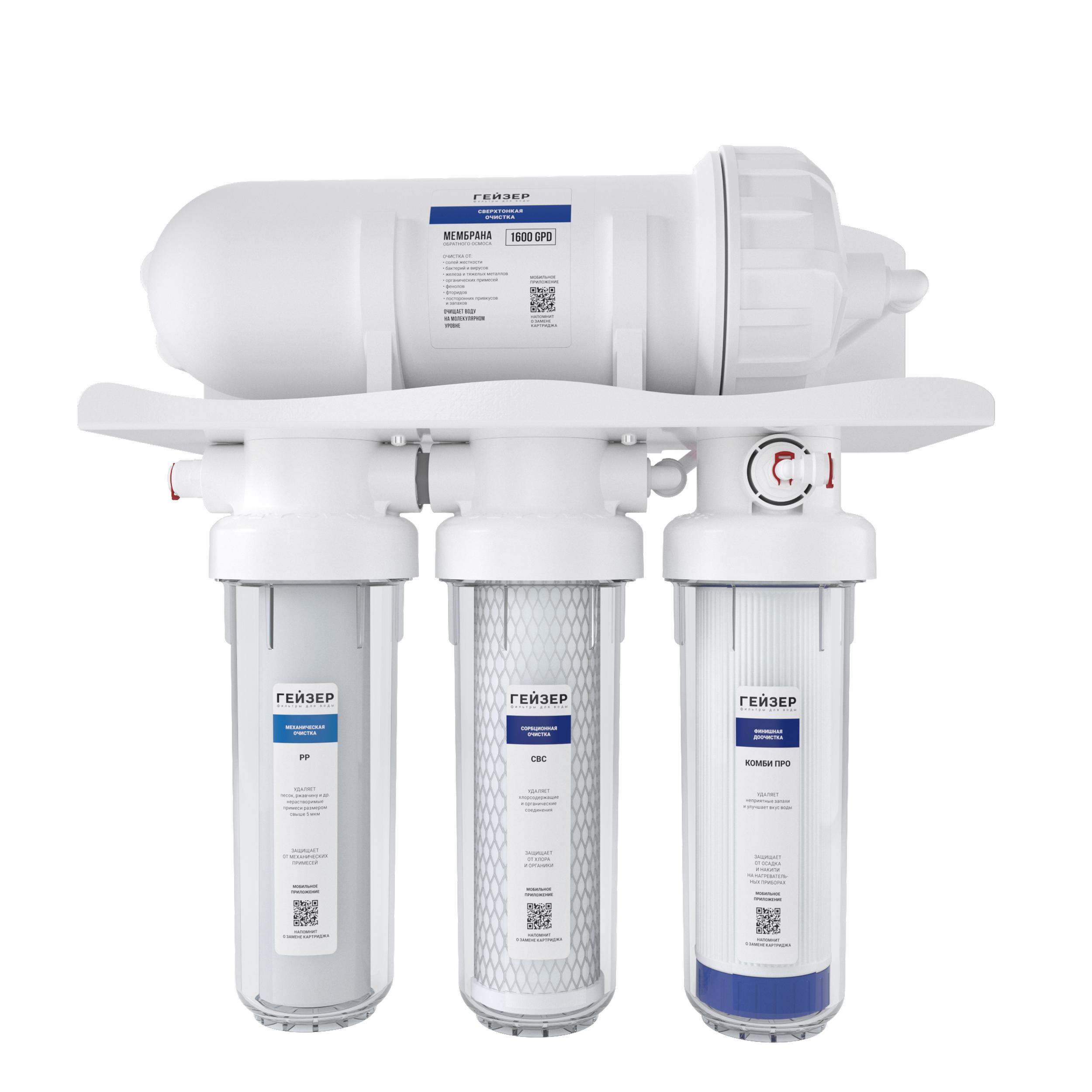 Этапы очистки воды фильтром осмоса Гейзер Престиж Про 1600: