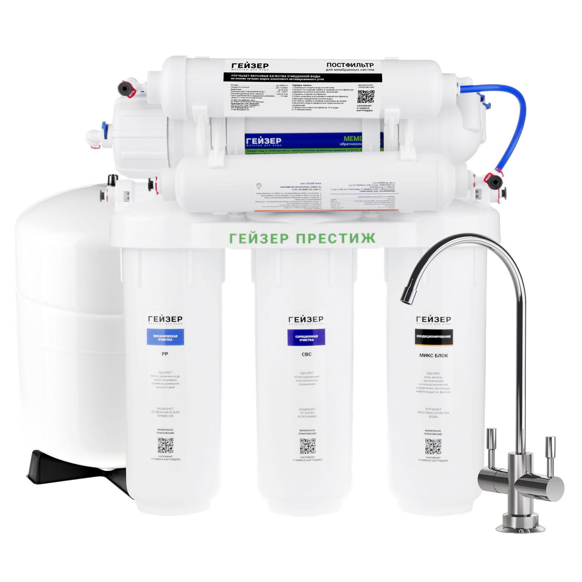 ЭТАПЫ ОЧИСТКИ ВОДЫ СИСТЕМОЙ ОБРАТНОГО ОСМОСА ГЕЙЗЕР ПРЕСТИЖ М: