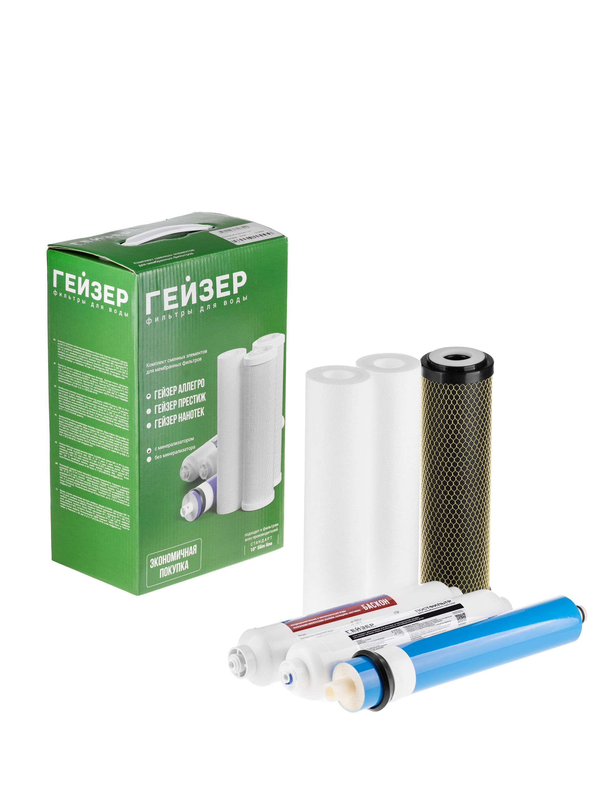 Комплект предназначен для замены исчерпавших свой ресурс сменных элементов в фильтрах Гейзер Аллегро с минерализатором.