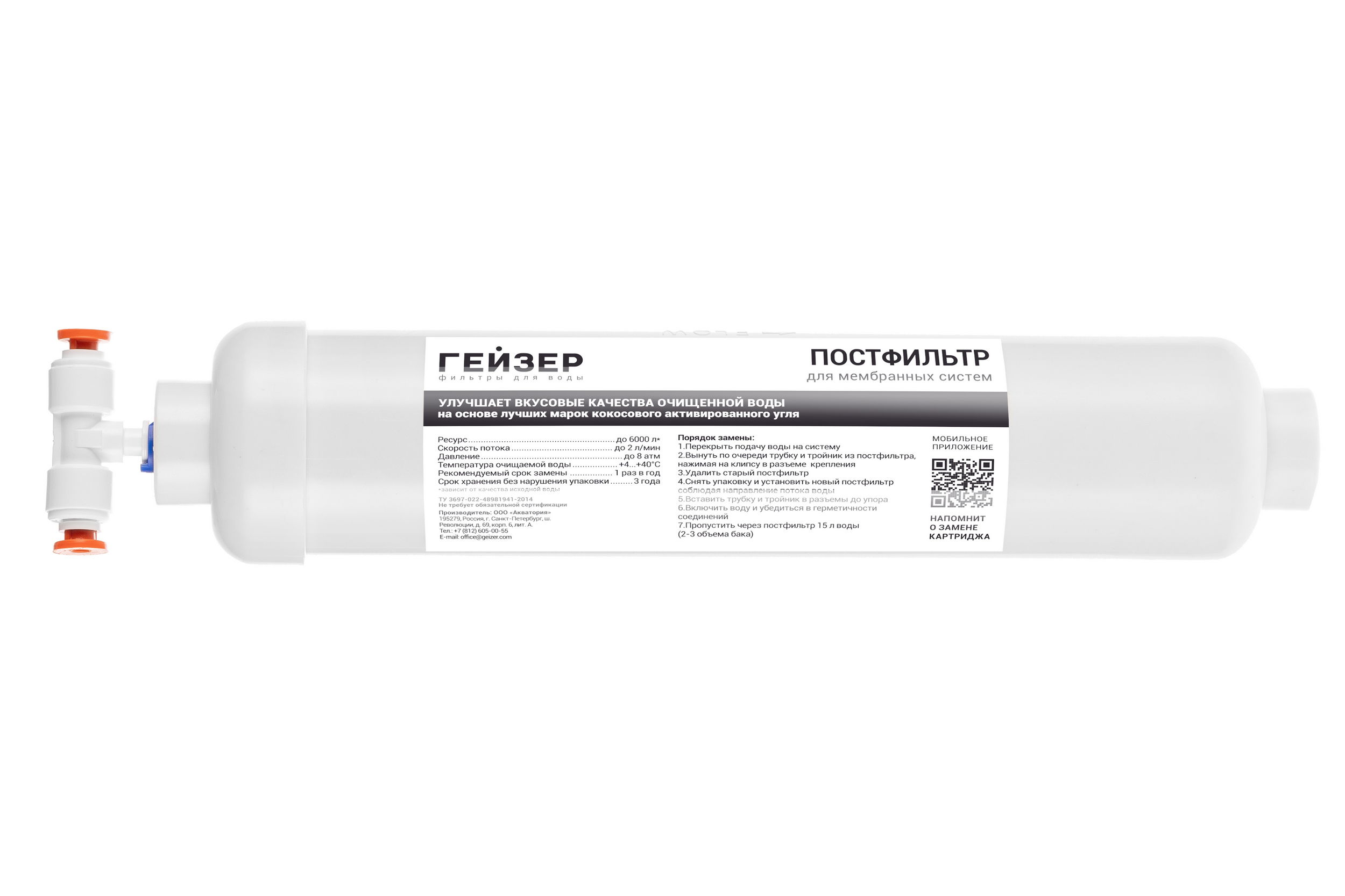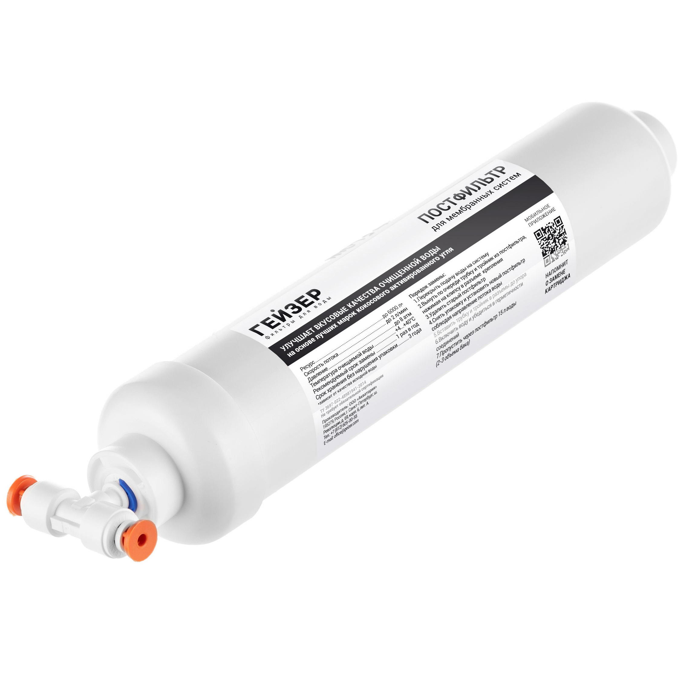 Угольный постфильтр используется для доочистки и кондиционирования воды, очищенной системой обратного осмоса. Удаляет посторонние привкусы и запахи, которые могут появиться при длительном хранении воды в накопительном баке. В комплектацию входят фитинги для подключения.