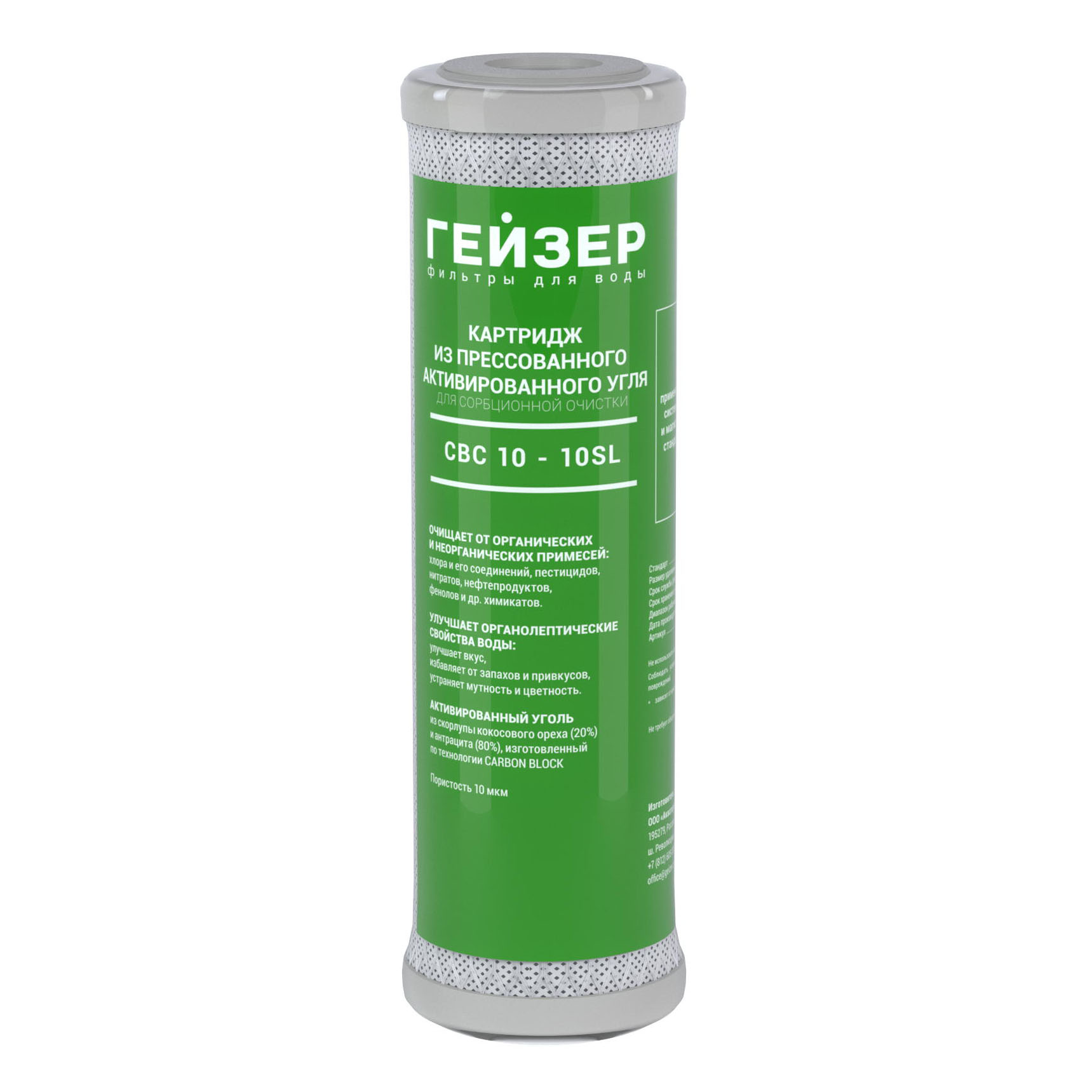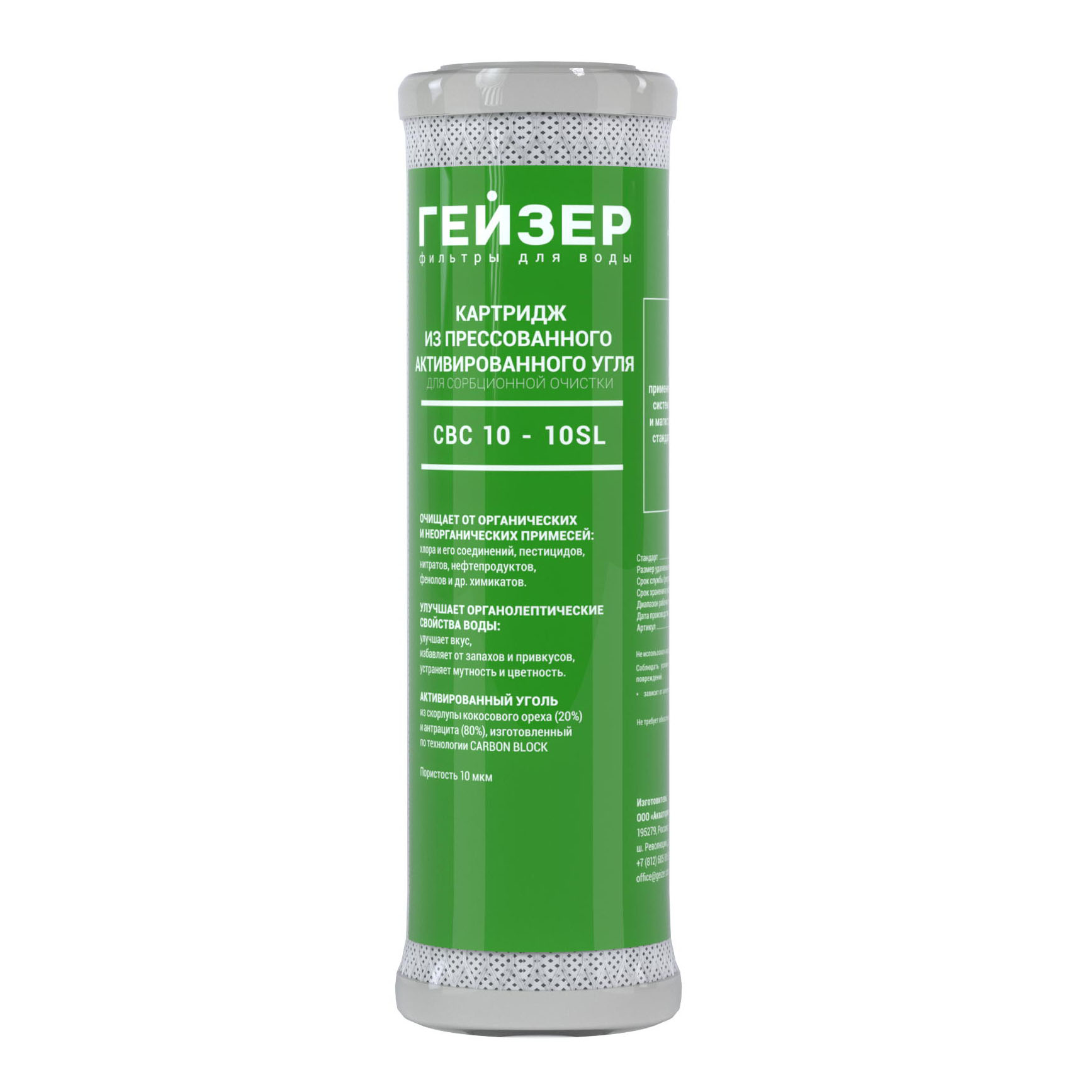CBC 10-10SL (10 мкм) – картридж из прессованного активированного угля для сорбционной очистки.