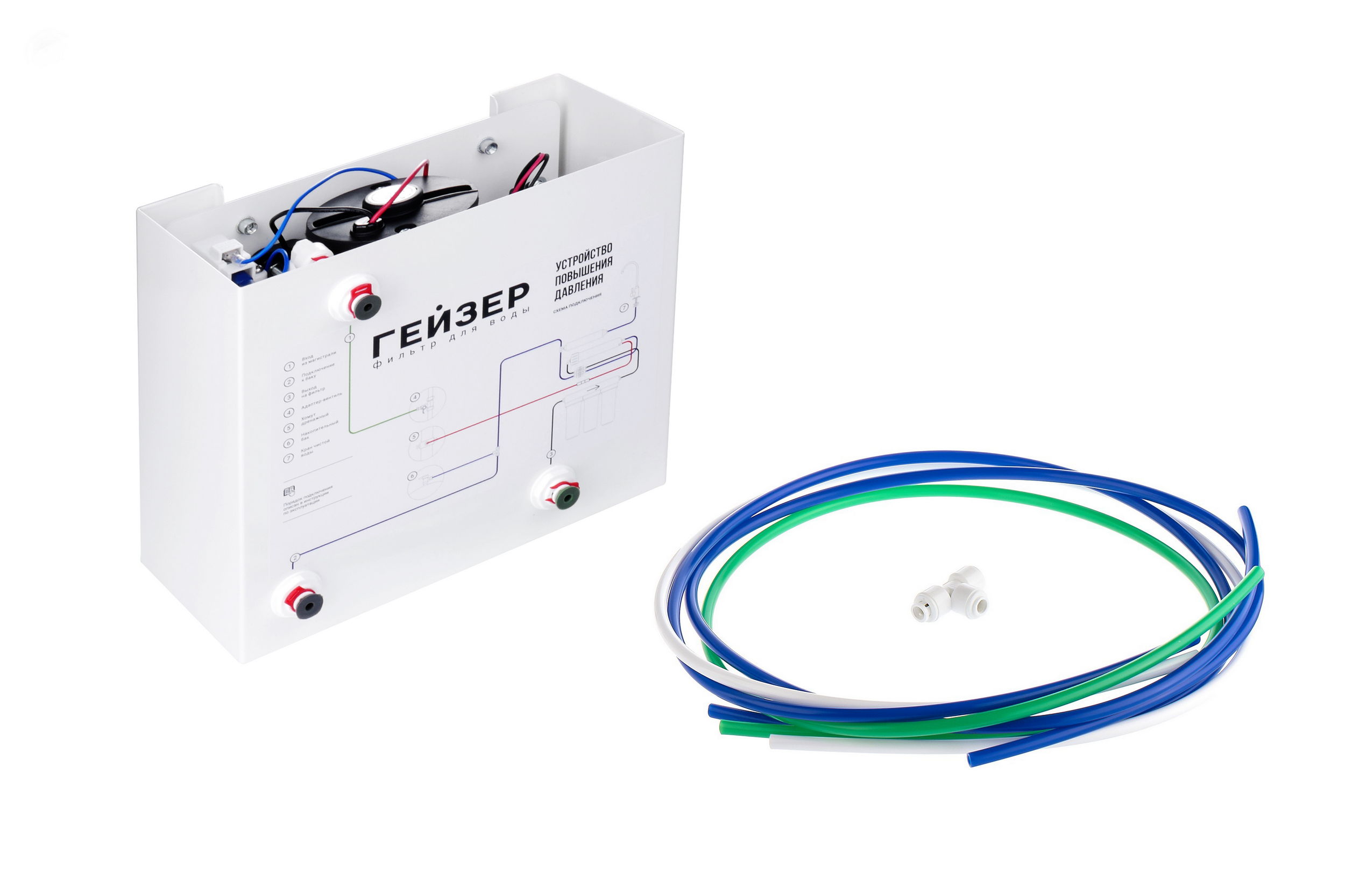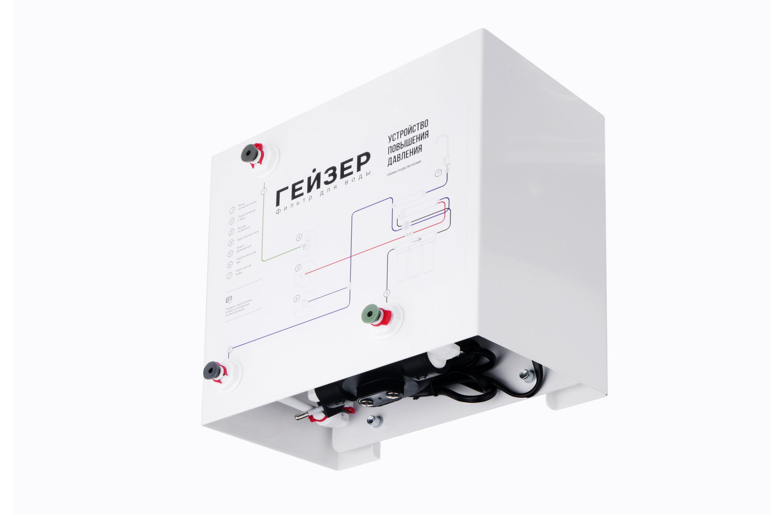 Устройство повышения входного давления для систем обратного осмоса подойдет для подключения к фильтрам любых производителей. Устройство обеспечивает стабильную работу фильтра при падении давления в трубопроводе ниже определенного уровня. Устанавливается на магистраль холодной воды перед системой водоочистки. Компактный модуль включает помпу и все управляющие элементы.