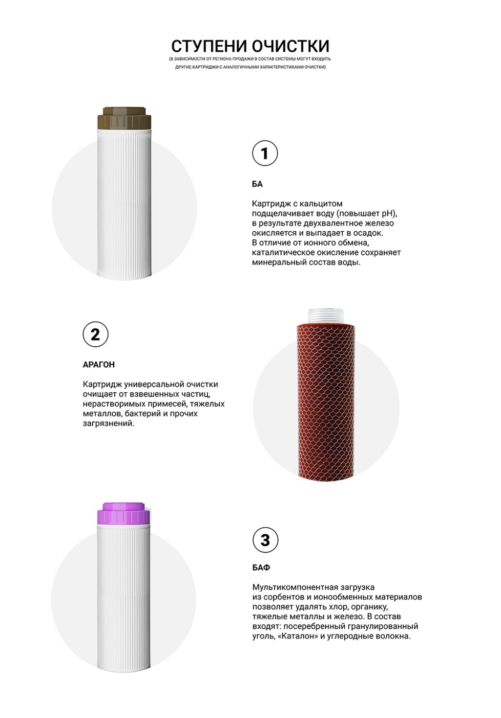 - БАФ - универсальный картридж для удаления хлора, органических примесей, железа и тяжелых металлов