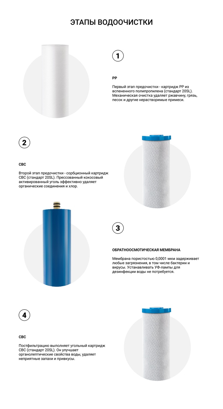 • Увеличение срока службы мембран благодаря фильтрам предварительной очистки;