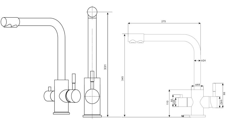 - Излив с двойной функциональностью – нет необходимости сверлить дополнительное отверстие в мойке для крана питьевой воды после фильтра;